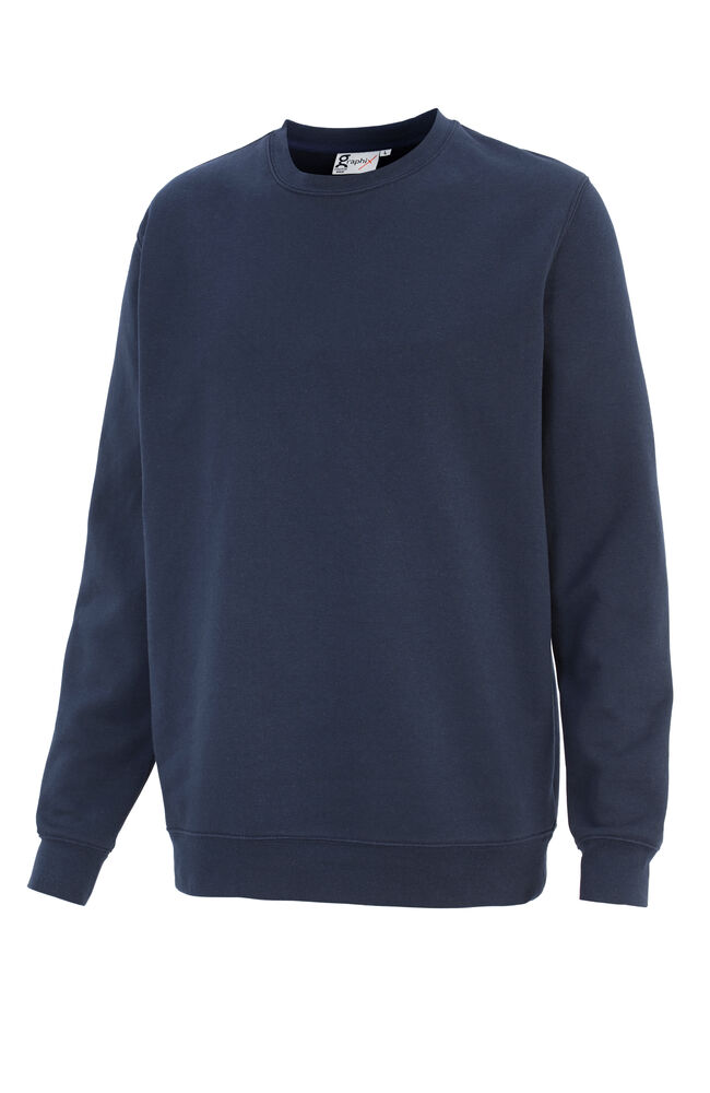 Klassisk genser med rund hals og børstet innside. 1×1 ribb i mansjett, nakke og nederkant. Designet for industriell vask (85°).