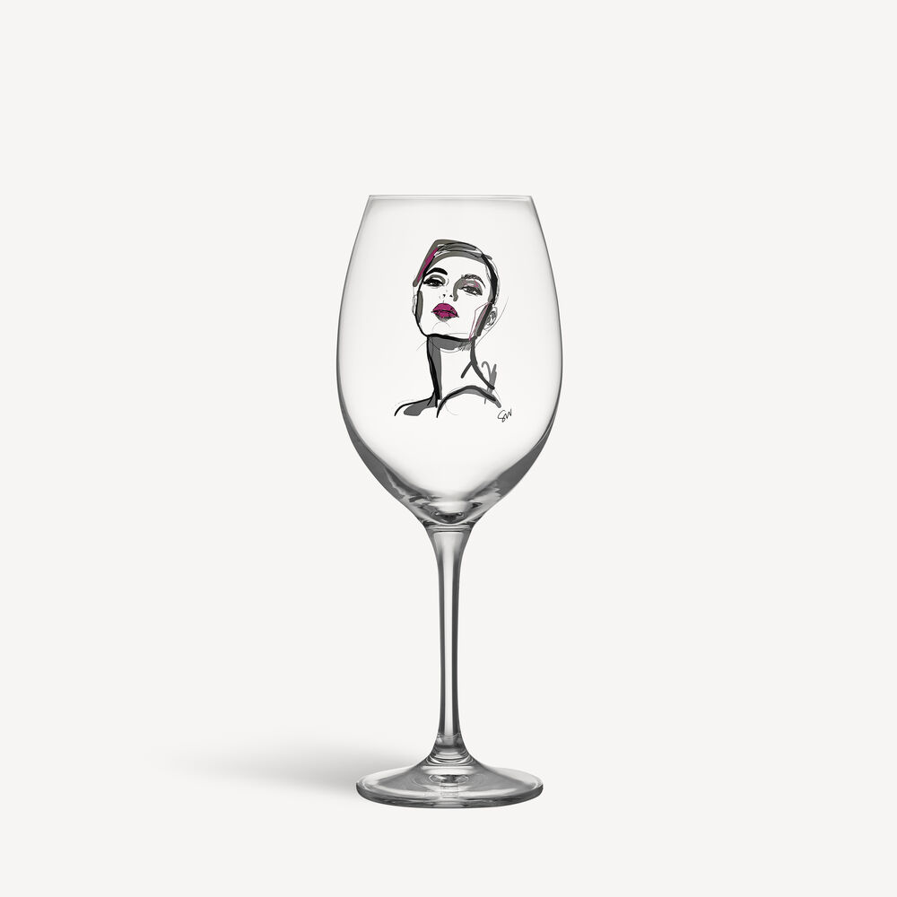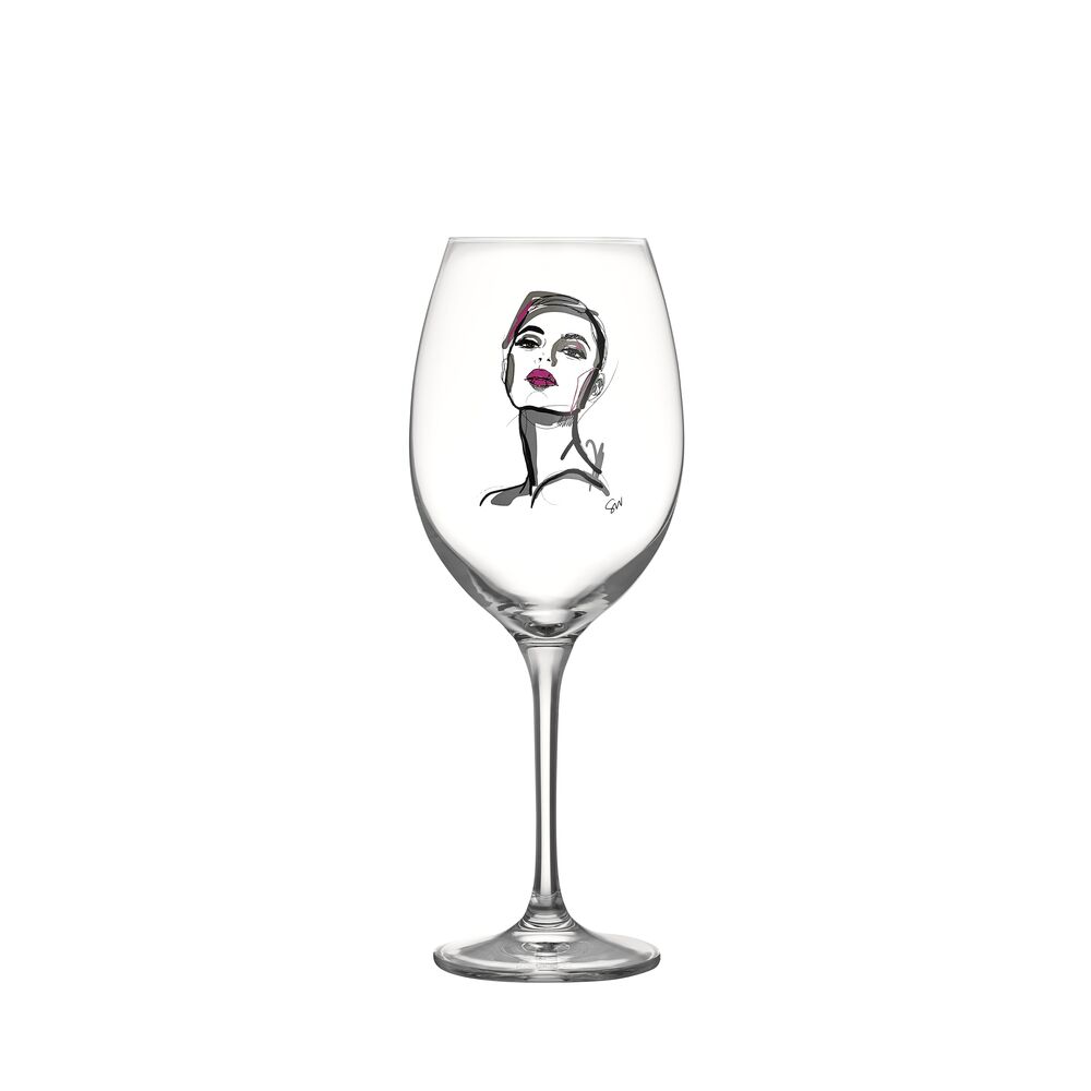 Vinglassene i All About You-serien fra Kosta Boda handler om kjærlighet, lengsel og lidenskap – sterke følelser fanget i glass med et sparsommelig design og illustrerte motiver med påvirkninger fra moteverdenen. Hold You-glasset har et kvinnelig motiv i rosa som gjenspeiler ro, trygghet og kjærlighet. Design Sara Woodrow.