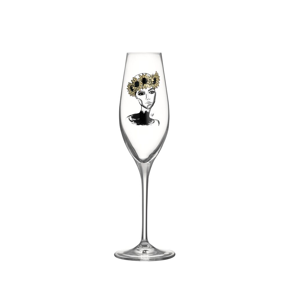 Champagneglassene i All About You-serien fra Kosta Boda handler om kjærlighet, lengsel og lidenskap – sterke følelser fanget i glass med et sparsommelig design og illustrerte motiver med påvirkning fra moteverdenen. Glasset Let’s Celebrate You handler om å se og feire skjønnheten til hver person. Design Sara Woodrow.