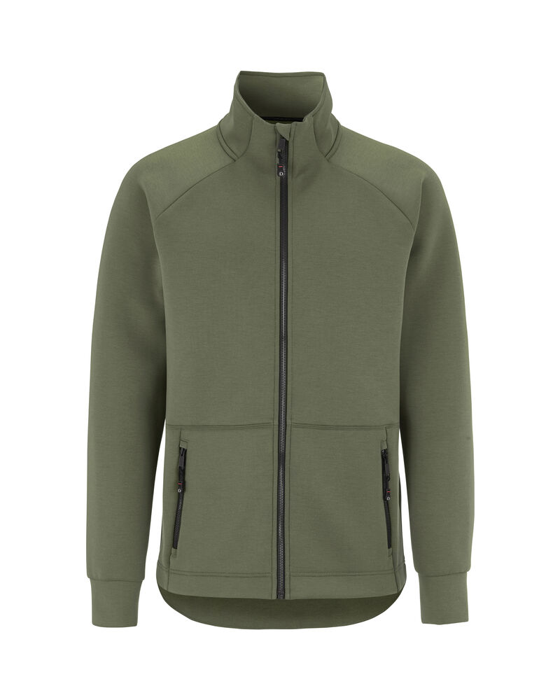 Genser laget i et dobbeltstrikket materiale med ekstra stretch. Genseren er laget av et blandemateriale med bl. annet sertifisert resirkulert polyester. Sydde mansjetter i nederkant og ermeavslutninger. Formet dobbel krage. Glidelås som går opp i kragen og frontlommer med dekorative, sorte glidelåser. Genseren har raglanermer og litt lengre rygg, noe som gir en svært god passform.