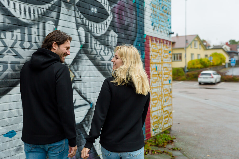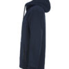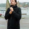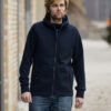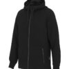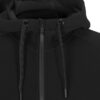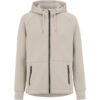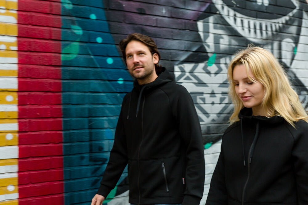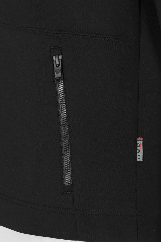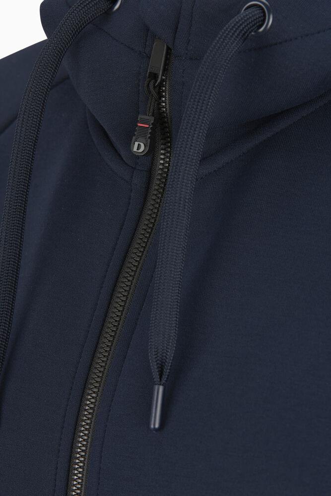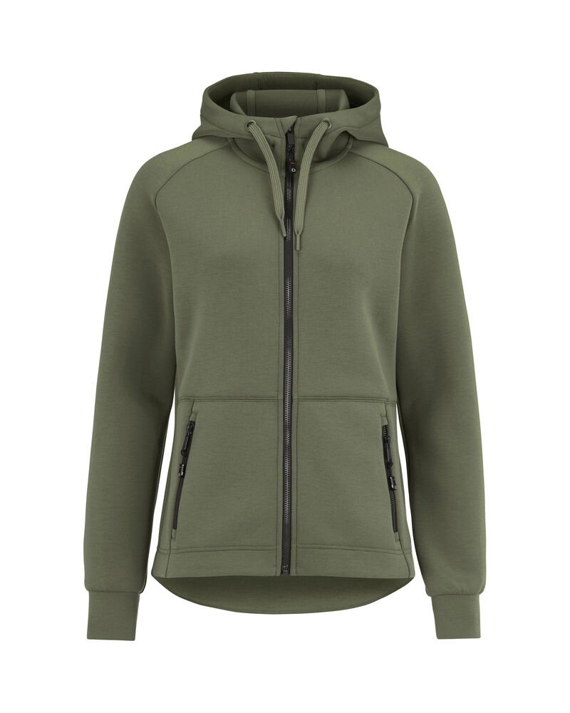 Hettegenser laget i et dobbeltstrikket materiale med ekstra stretch. Hettegenseren er laget av et blandemateriale med bl. annet sertifisert resirkulert polyester. Sydde mansjetter i nederkant og ermeavslutninger. Formsydd hette med doble sømmer og snøring. Glidelås som går opp i kragen og frontlommer med dekorative, sorte glidelåser. Hettegenseren har raglanermer og litt lengre rygg, noe som gir en svært god passform.