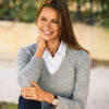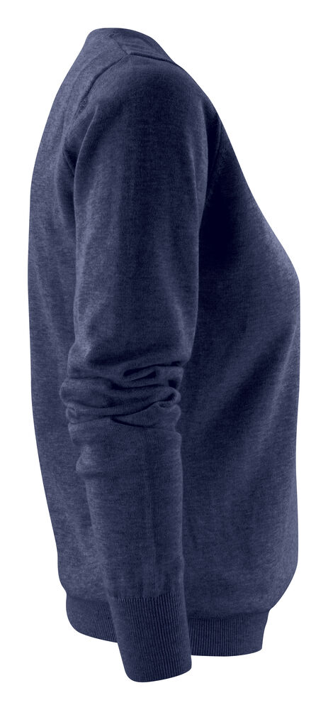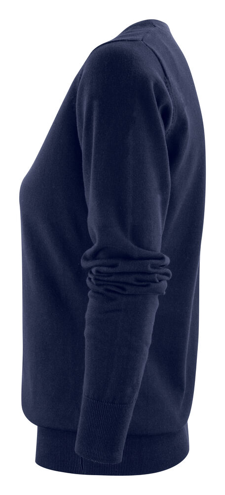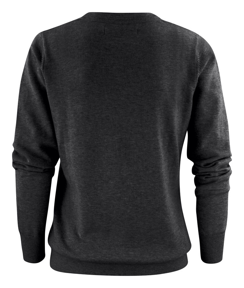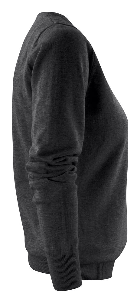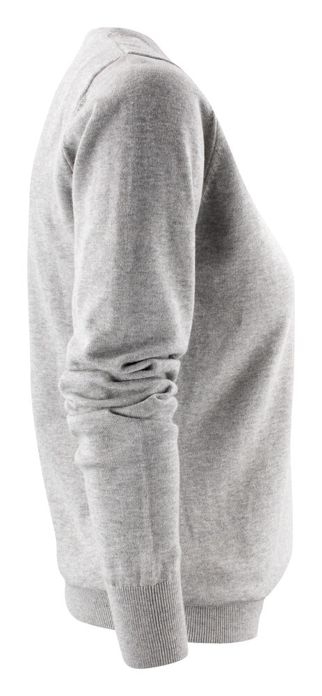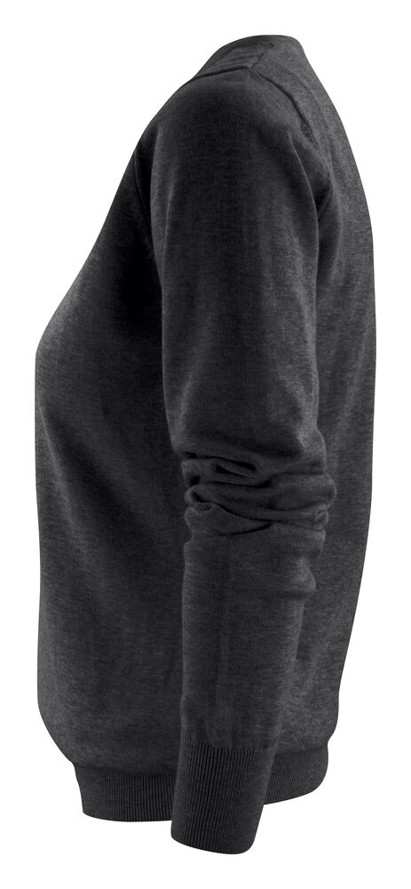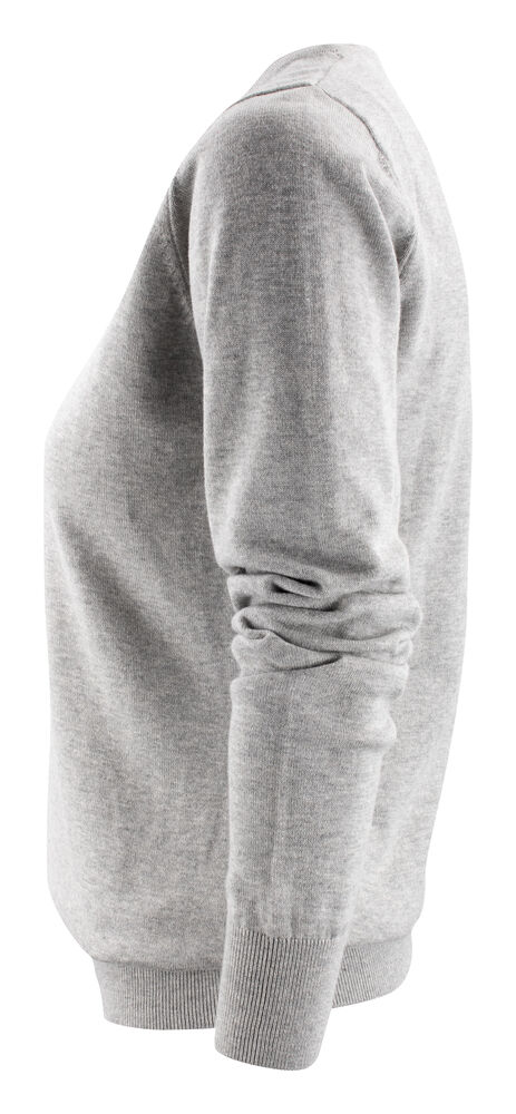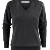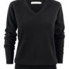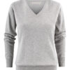 Finstrikket genser med V-hals til dame. 1×1 ribb i nederkant og på ermene.