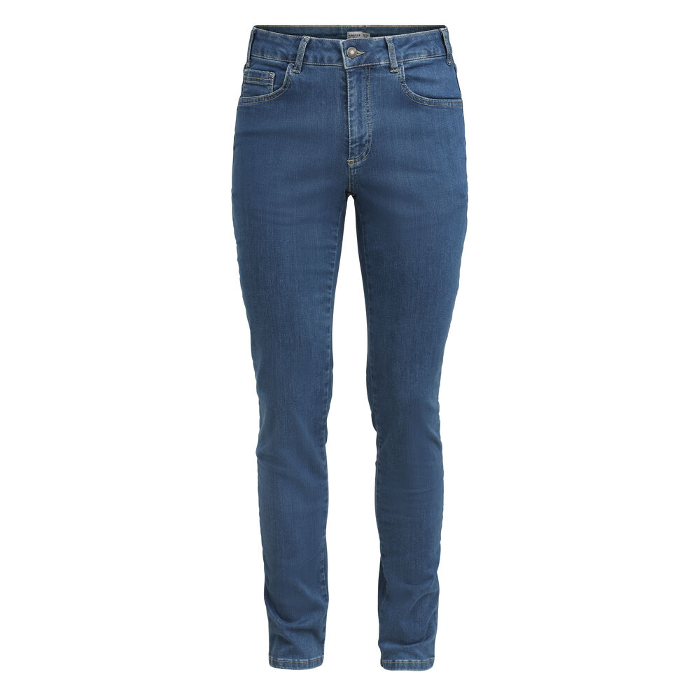 Atlantis-jeansene har god stretch og moderne passform, noe som gir en lett, smidig følelse hele dagen. Med to frontlommer og to baklommer kombinerer buksen funksjonalitet med mote. Disse jeansene er laget av en blanding av 59,50 % pre consumer resirkulert bomull, 22 % sertifisert resirkulert polyester, 16 % post consumer resirkulert bomull og 2,5 % elastan, og tilbyr både komfort og miljøbevissthet. Med et bredt utvalg av størrelser tilgjengelig – totalt 24 forskjellige størrelser – finnes det en perfekt passform for alle.