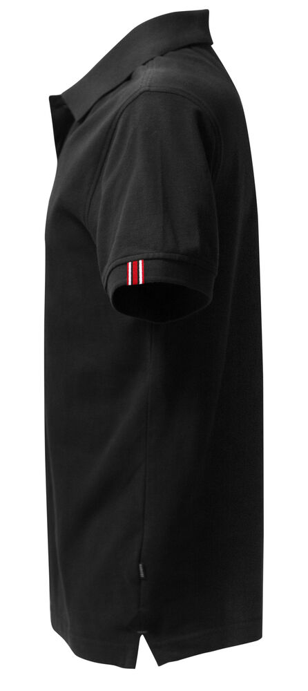 Polo pique i kjemmet bomull med kontrastfarge i nakkebånd, stolpe og erme. Tofargede knapper.