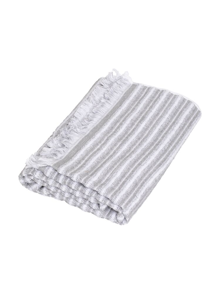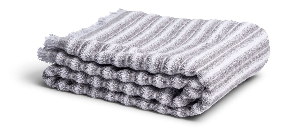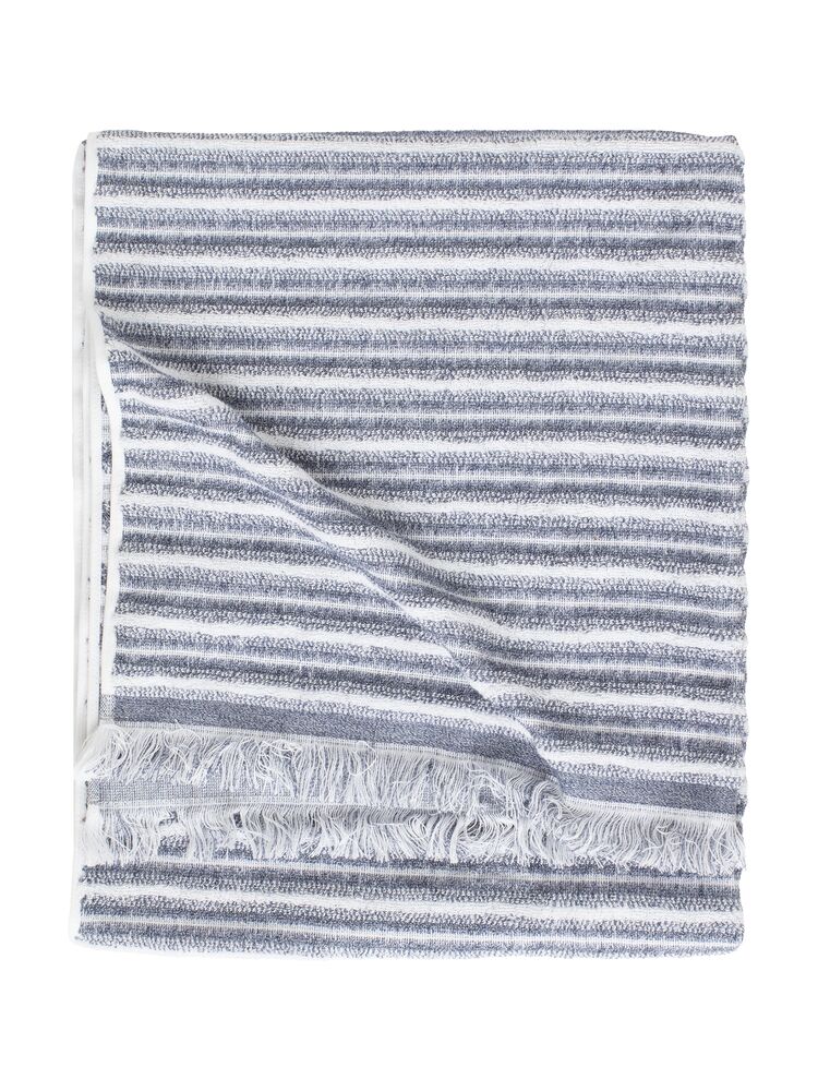 Badelaken Melange kommer i to trendy strandfarger som minner om både blåskjell og østers. Det melerte mønsteret sammen med borden av frynser gir et moderne utseende. Badelakenet er produsert av myk bomull.