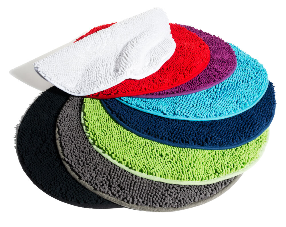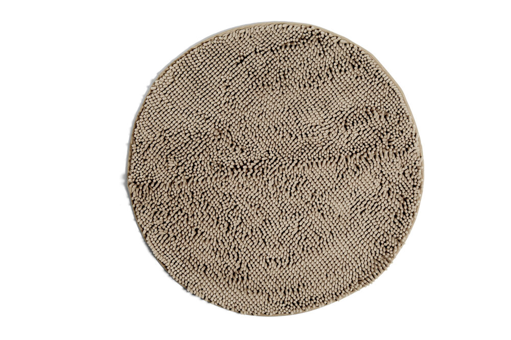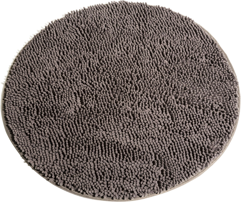 Rund baderomsmatte av polyesterchenille som er myk og behagelig, med antislip på undersiden som er av TPR, som også passer til gulvvarme. Høyden på luggen er 2 cm. Passer fint til dusjforheng 410932 samt frotté 410001 og 410002.