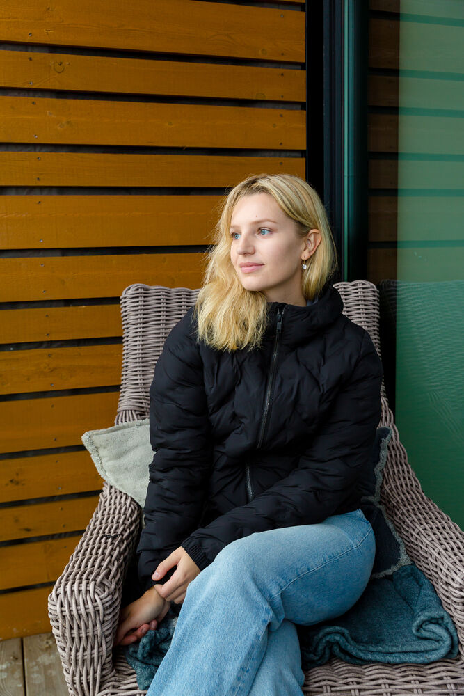 Lettvektsjakke med sveisede sømmer som gir et bølgende mønster. Laget av sertifisert, resirkulert polyester. Jakken er etterbehandlet med Bionic Finish Eco, som gir en vannavvisende effekt. Fastsittende hette med kantbånd. Hel glidelås som går opp i kragen, og frontlommer med dekorative, synlige glidelåser. Strikk i nederkant og i mansjettene. Noe innsvinget modell.