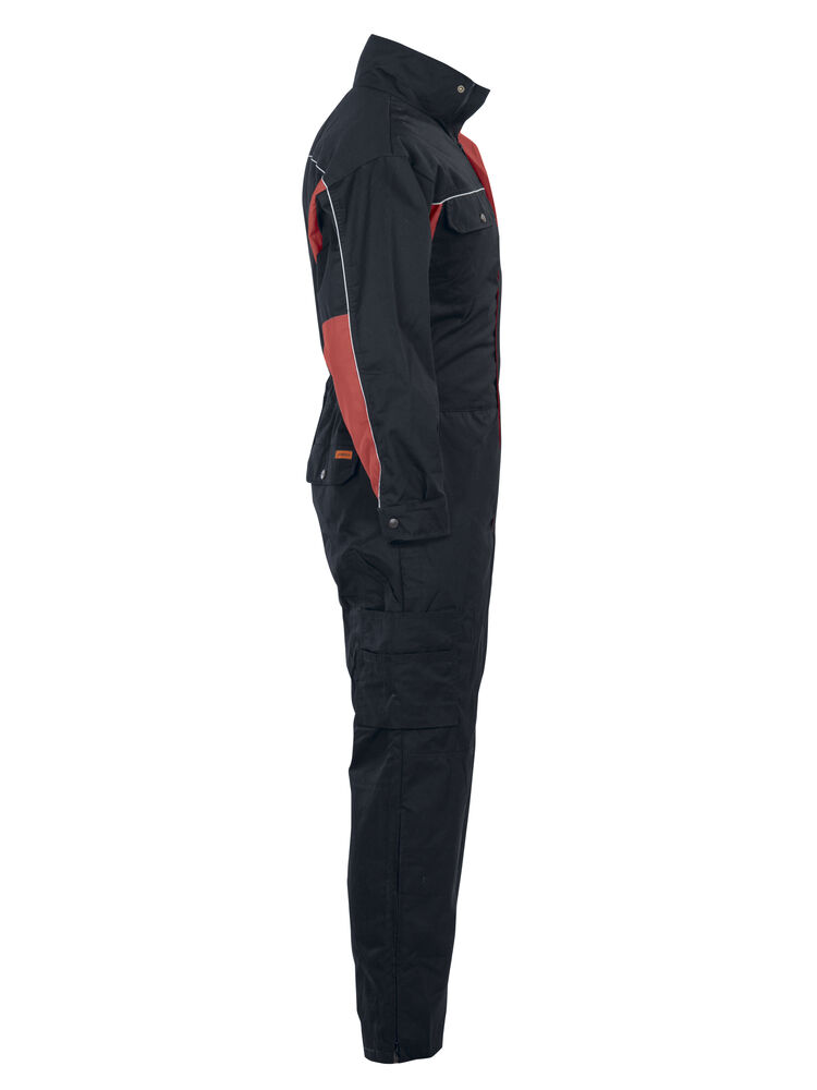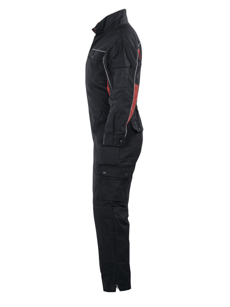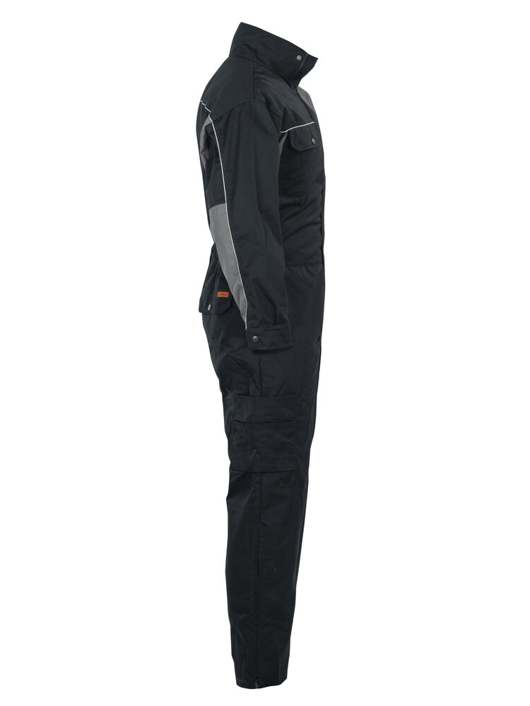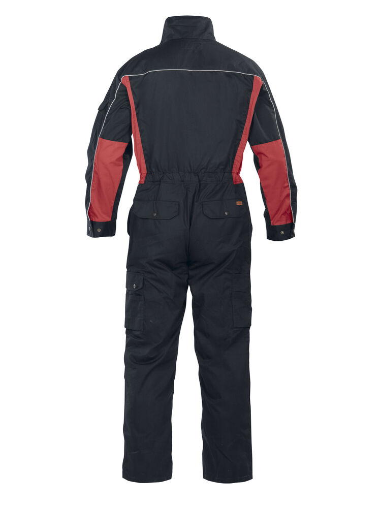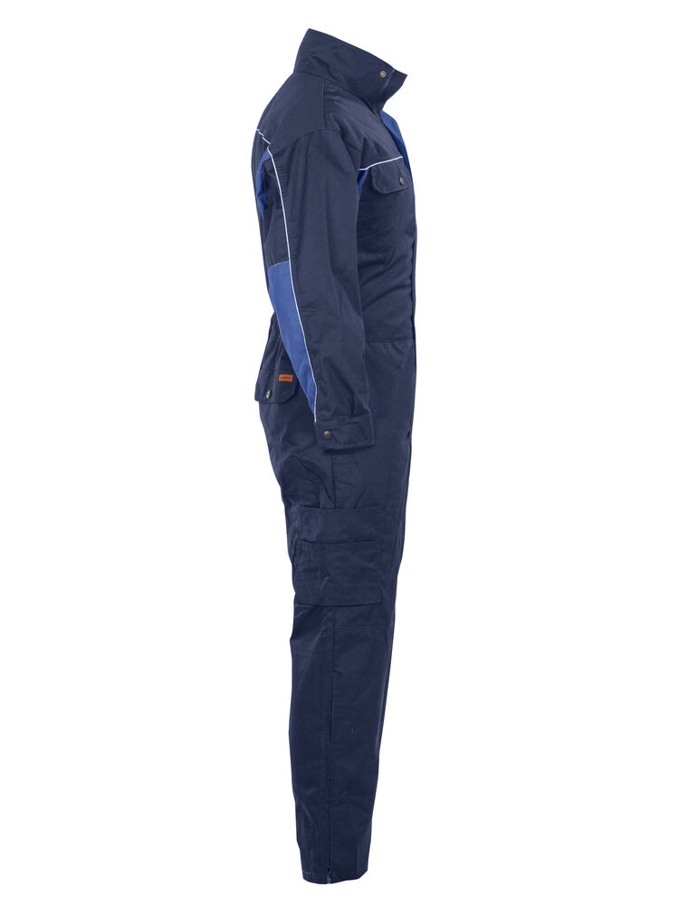 Basisfunksjoner som passer for serviceyrker og verksteder. Industrivask 85 °C. Skjult toveis glidelås. Brystlommer med klaff. Baklommer med klaff. Innsydde lommer foran. Slisse i siden. Regulerbar strikk i midjen. Regulerbart erme med trykknapp. Åpen benlomme med ekstra rom og tommestokklomme. Benlomme med klaff og mobiltelefonlomme. Innvendige knelommer. Glidelås opp til knærne på bena.