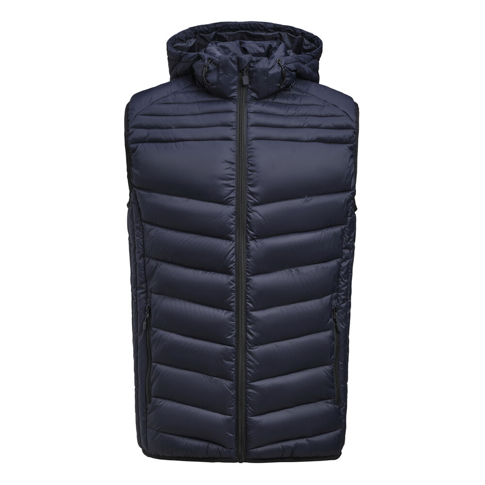 Med avtagbar hette og elegante vatterte linjer, passer denne allsidige vesten perfekt sammen med gensere, T-skjorter eller skjorter.