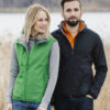 Softshell vest med 3 ytterlommer og 2 innerlommer, 2 ton-i-ton omvendte glidelåser. Elastisk teip rundt armhulene og kroppen. Stretchkvaliteten i jakken gjør at man må velge en type transfer som er tilpasset softshell med stretch for å unngå at trykket lett blør igjennom.
