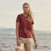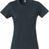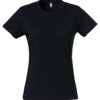 Basic t-shirt i en smalere passform, bånd i nakke, elastan i halsribb og forsterkede sømmer på skuldre. Rundstrikket herremodell og sidesømmer på damemodell.