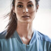 Passform med innrammede sidesting og fremtredende søm på skulderen. Formet halsring, skjulte knapper og to diskret trykknapper.