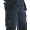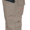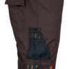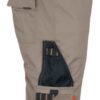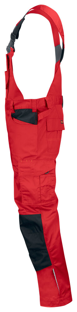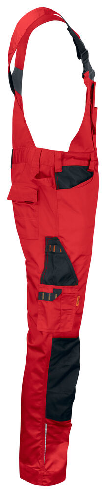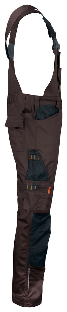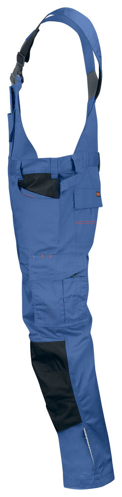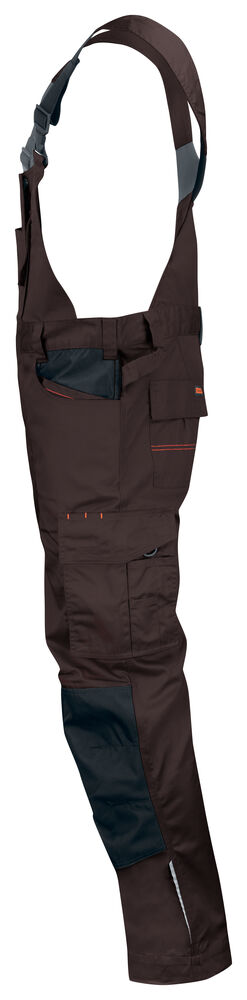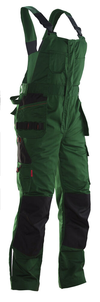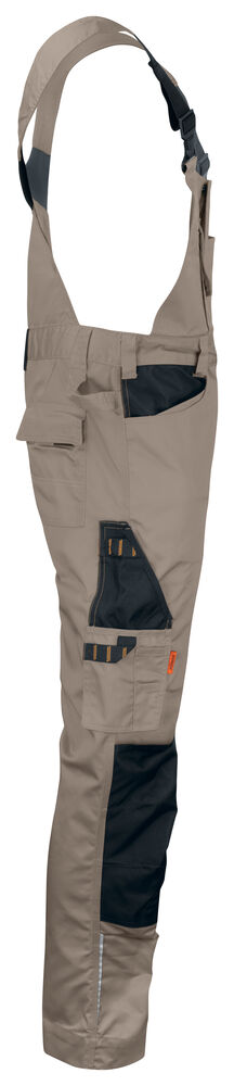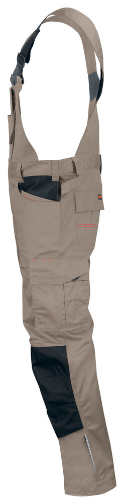Lettstelt polyester/bomull som holder på fargen og formen. Brystlommer, den høyre med kladd og borrelås. Seler med strikk. Hengelommer med ekstra rom og en ekstra lomme med glidelås. Baklommer med klaff og borrelås. Benlomme med ekstra rom og klaff med borrelås. Tommestokklomme med knivholder. Forsterkninger på knebeskyttelseslommer. C42-64 kan forlenges med 5 cm ved at kanten brettes ned.