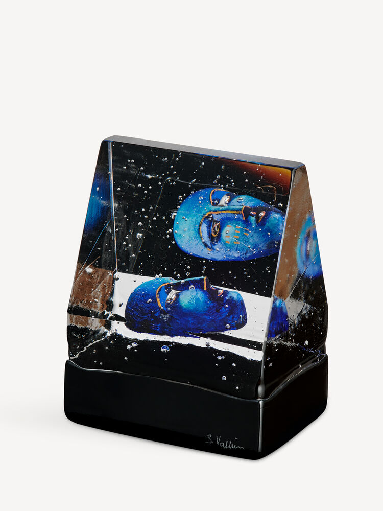 I Bertil Valliens verden møter vi glassets indre natur. Det klare glasset står i sterk kontrast mot den ugjennomsiktige sorte sokkelen. Black Elements House of Mystery er støpt i en kullform med Valliens velkjente håndmalte hode, støpt inn i den solide glassblokken. Dette objektet er en del av Kosta Boda Artist Collection.