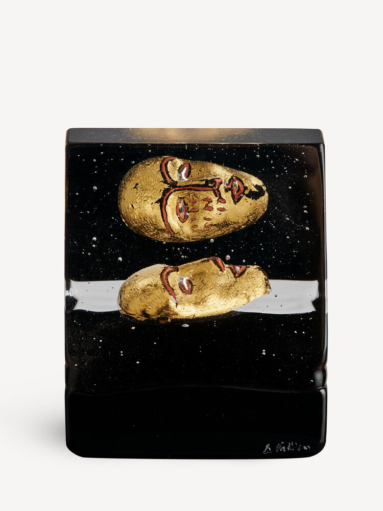 I Bertil Valliens verden møter vi glassets indre natur. Det klare glasset står i sterk kontrast mot den ugjennomsiktige sorte sokkelen. Black Elements House of Mystery er støpt i en kullform med Valliens velkjente håndmalte hode, støpt inn i den solide glassblokken. Dette objektet er en del av Kosta Boda Artist Collection.