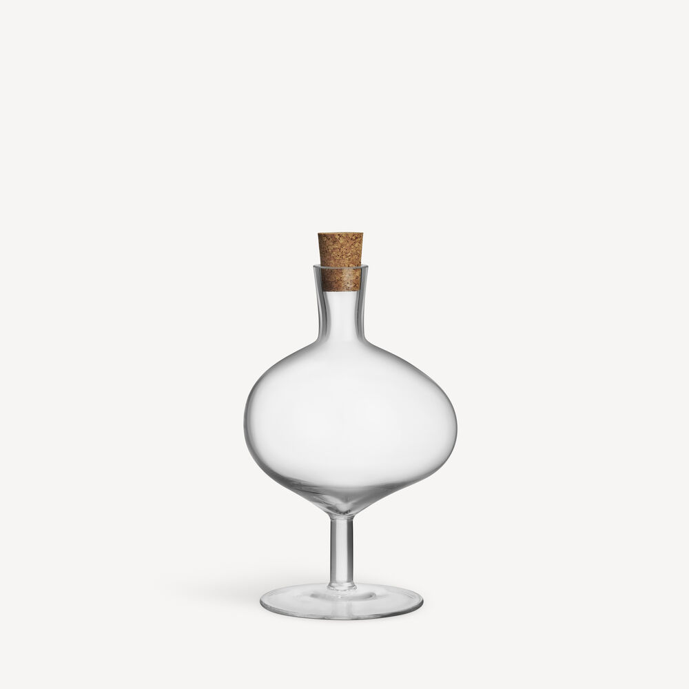 Munnblåst glassflaske på stett. Fra Bod-serien. Kan brukes som pyntegjenstand, beholder eller vase. Kork inkludert.
