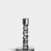 Carat-serien er basert på en moderne tolkning av den tradisjonelle glasslipingen som har gjort Orrefors verdenskjent. Den uregelmessige geometrien skaper vakre refleksjoner av lys i krystallglasset. Carat lysestake i antrasitt med detaljer av rustfritt stål finnes i tre høyder. Designet av Lena Bergström.