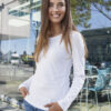 Rundhalset stretch topp med lange ermer til dame.