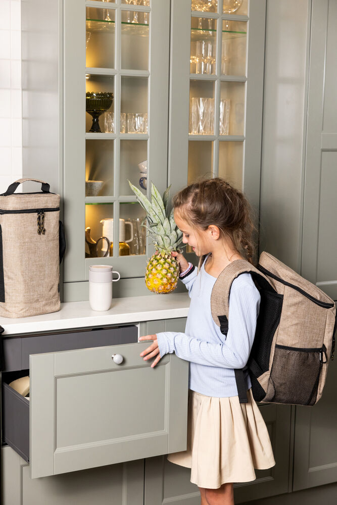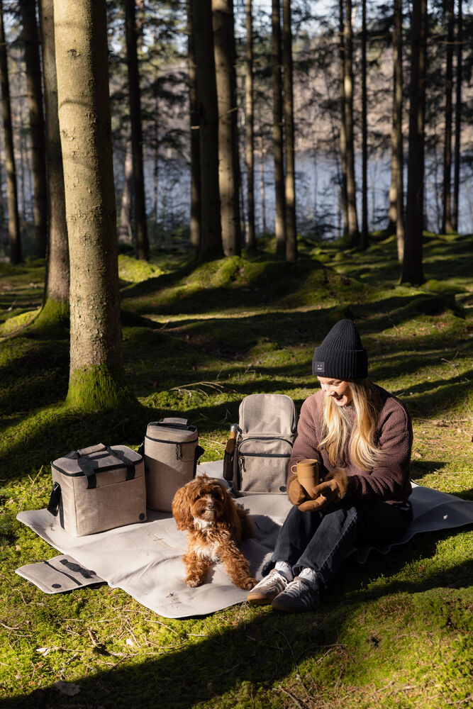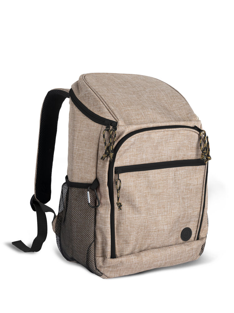 Det aktive friluftslivet ligger Sagaforms hjerte nær, og med City kjøleryggsekken ønsker vi å få flere til å ta steget ut i det fri. City kjøleryggsekken er luksuriøs og sporty med et yttermateriale i beige rPET. rPET-materialet (Recycled PET) er laget av resirkulerte PET-flasker. I tillegg til den fenomenale kjølefunksjonen har ryggsekken mange fine detaljer som gjør den nyttig i skog og mark. To ytterrom, nettinglommer på sidene, karabinkrok for å feste krus eller andre gjenstander, innvendige stropper, forsterket rygg og justerbare skulderstropper. Vanntette sømmer på innsiden. Glidelåsene og de ribbede stroppene har en stilig kontrastfarge. En ting er sikkert – det har aldri vært enklere å bære kjølebagen! Rommer 21 liter. Design Studio Sagaform.