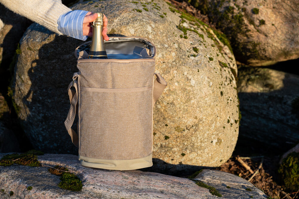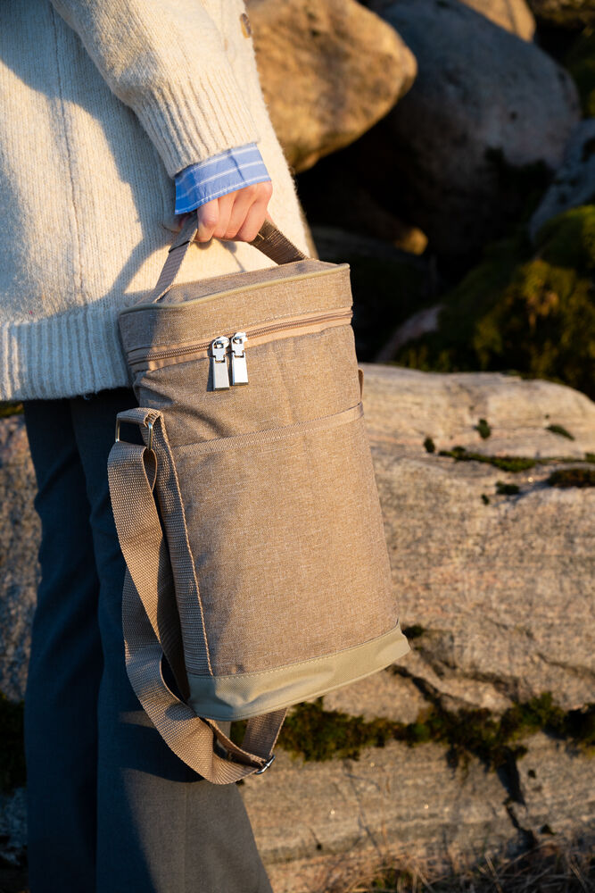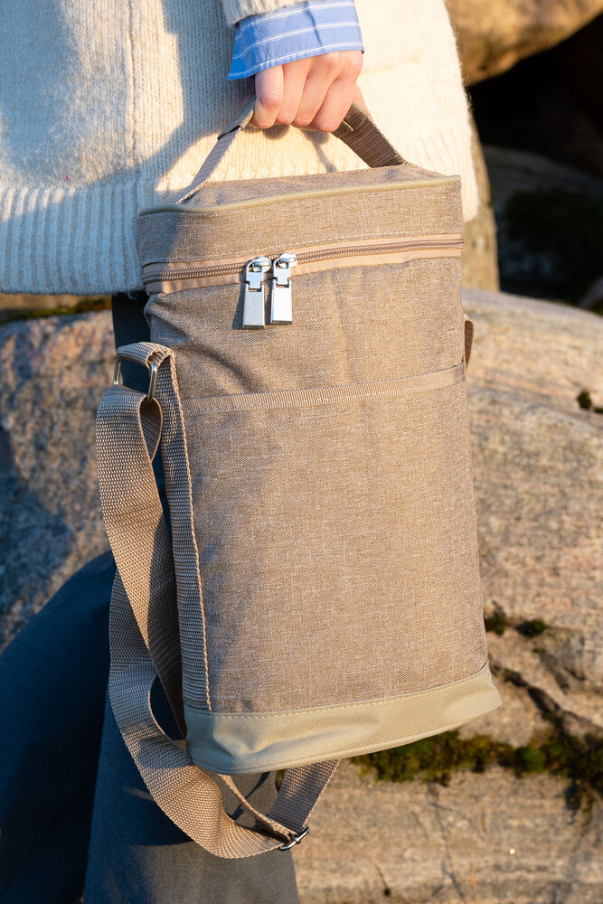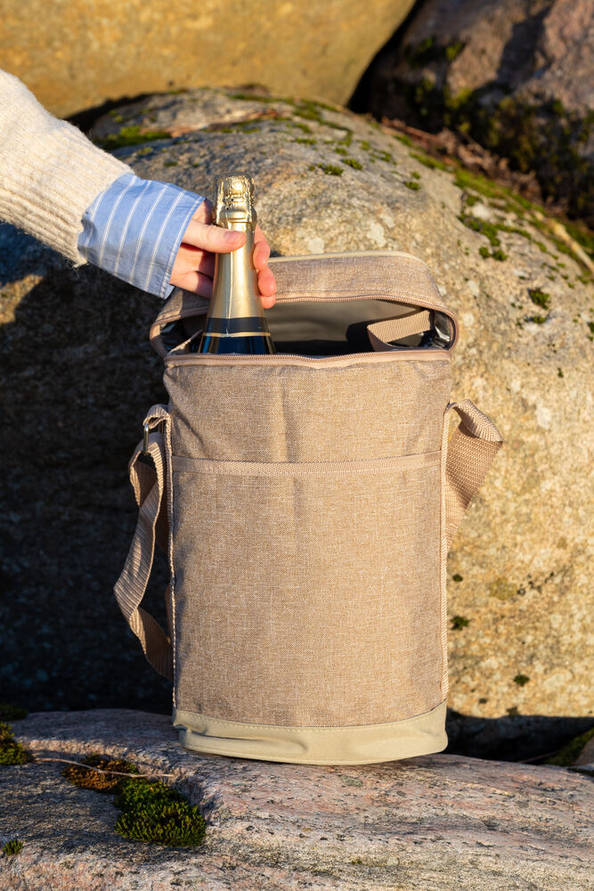Praktisk og fin kjøleveske i lin-look. Passer til to vinflasker eller plastflasker på 1,5 liter.