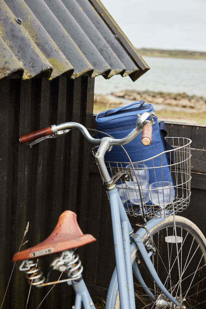 Praktisk og sporty kjøleveske i en høyere modell. Laget av blått rPET-materiale med fine, kontrastfargede detaljer. Denne litt høyere kjølevesken passer perfekt til – for eksempel – to vinflasker eller 1,5 liters PET-flasker. Har både bærehåndtak og justerbar skulderstropp.