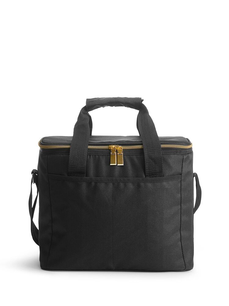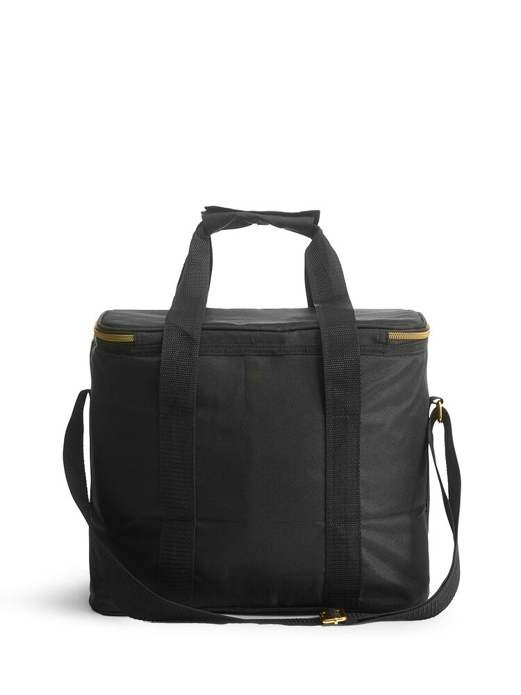 Romslig og stilren kjøleveske i svart med lekre gulldetaljer. Rommer 20 liter.