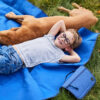 Luksuriøst og sporty piknikteppe med vannavstøtende underside og myk, fleeceliknende overside, laget av rPET-materiale. City piknikteppe har en liten glidelåslomme for oppbevaring av viktige småting. Teppet rulles enkelt og greit sammen og kan deretter bæres i håndtaket. Design Studio Sagaform