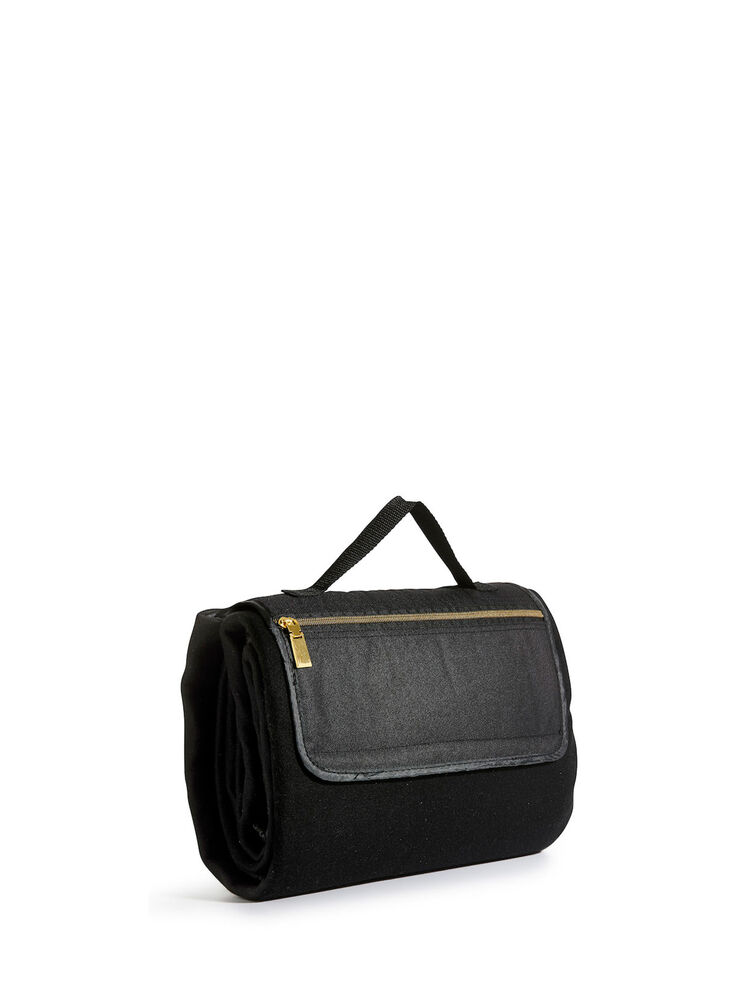 Luksuriøst piknikteppe med vannavvisende bakside og lomme med glidelås for oppbevaring. Pleddet rulles enkelt sammen og kan bæres i håndtaket.