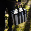 En praktisk og romslig kjølebag med smakfulle striper, perfekt for utflukter året rundt, både sommer- og vinteraktiviteter. Den større modellen er praktisk med både bærehåndtak og en justerbar skulderrem. Kjølebagen har en liten lomme på forsiden, og ytterstoffet er laget av resirkulerte PET-flasker. Vanntette sømmer på innsiden. Rommer 20 liter og er tilgjengelig i flere farger.