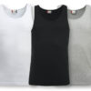 Singlet til herre i forkrympet, kjemmet bomullskvalitet og ringspunnet garn.