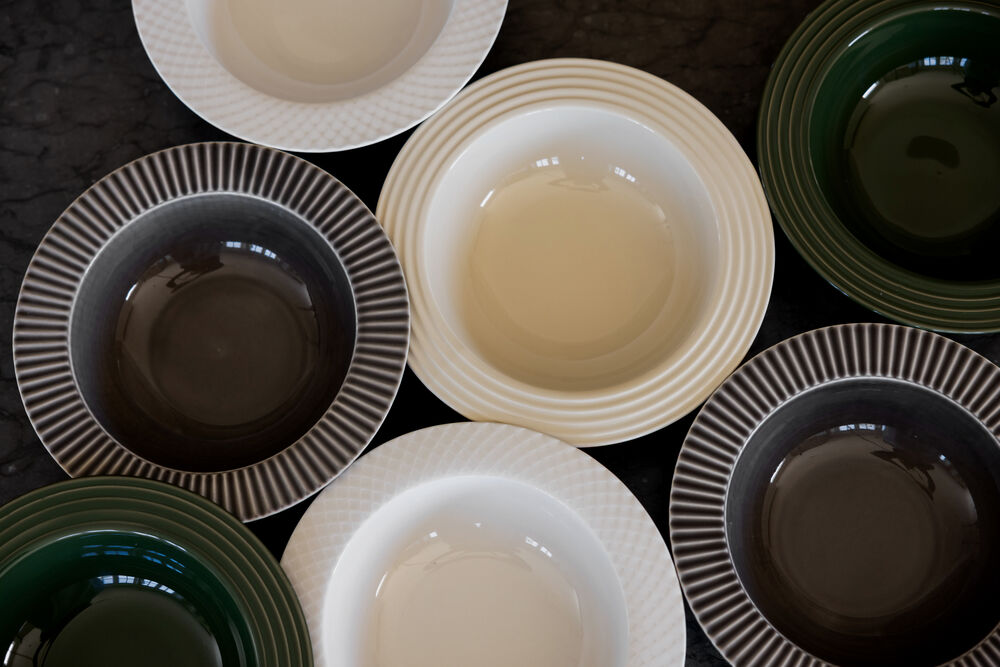 Oppdag Coffee & More dyp tallerken i grønt – en del av den vakre serien skapt i samarbeid med Margot Barolo. Denne dype tallerkenen, med sitt karakteristiske relieff og varme farge, tilfører en følelse av trygghet til hvert måltid. Mønstrene og linjene pryder tallerkenen og gir et harmonisk uttrykk, noe som gjør den perfekt for supper, pasta eller salater. Et enkelt, men stilig valg som løfter borddekkingen og blir en naturlig favoritt i ethvert hjem. En del av Coffee & More-serien. Tåler oppvaskmaskin og er matsikker.