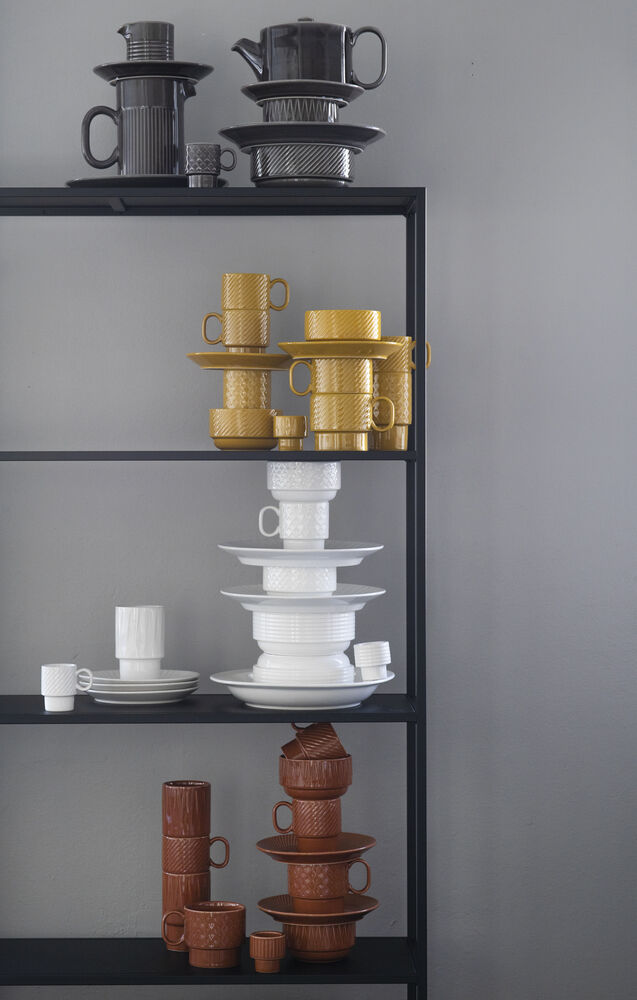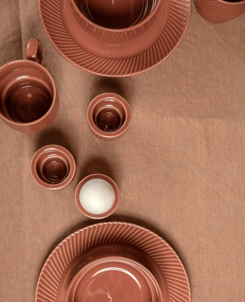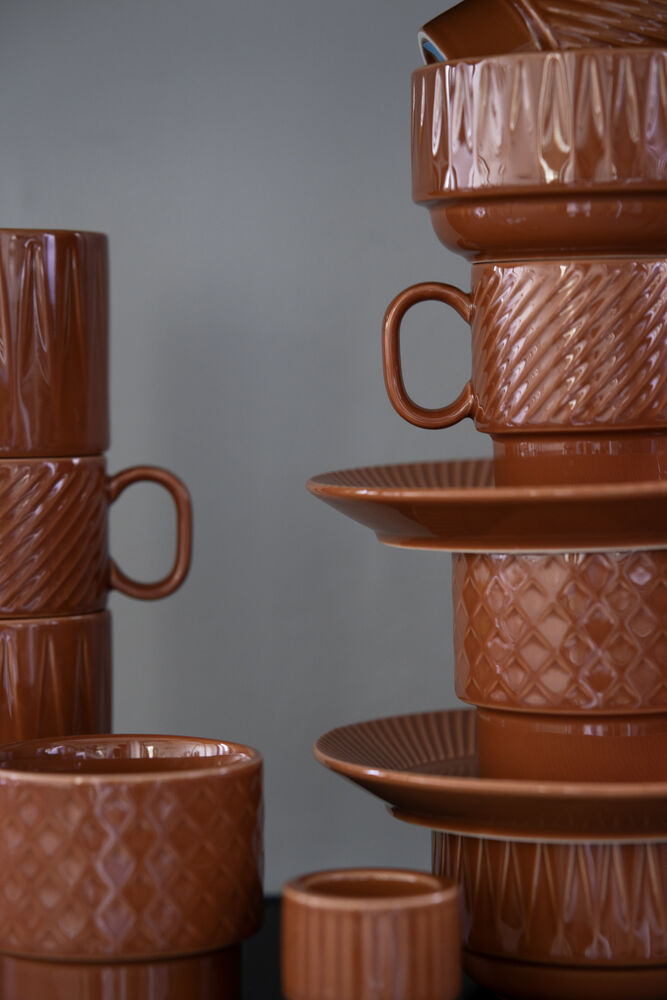 Denne eggkoppen med sitt karakteristiske lettelsesmønster er spesialdesignet for å fungere like godt som en telysholder. Produktet er en del av Coffee & More, utviklet av Sagaform i samarbeid med designeren Margot Barolo. Seriens design er en flørt med 70-tallets direkte, lekne og klare språk. Serien finnes i ulike deler, mønster og farger og gjør seg best i en herlig blanding av alt! Tåler mikrobølgeovn og maskinoppvask.