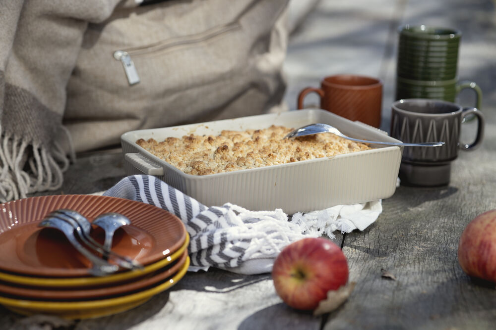 Tallerken med et karakteristisk uttrykk. Produktet er en del av serien Coffe & More, laget av Sagaform i samarbeid med designer Margot Barolo. Seriens design er en flørt med 70-tallets direkte, lekne og klare språk. Serien finnes i ulike deler, mønster og farger, og gjør seg best i en herlig blanding av alt! Tåler mikrobølgeovn og maskinoppvask.