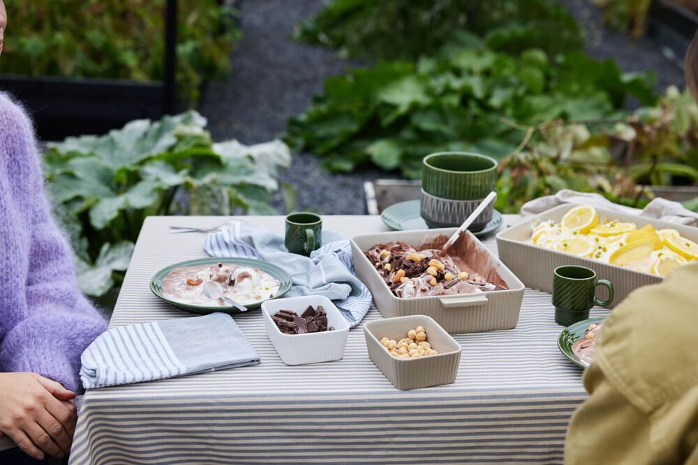 Skål med karakteristisk utseende, nå også i en vakker grønn farge. En dyp skoggrønn som passer perfekt med seriens andre farger, men som også blir noe veldig spesielt på egne ben. Vakre mønstre og linjer pryder de forskjellige delene av serien og skaper en følelse av trygghet og hjemmefølelse. Produktet er en del av Coffee & More-serien, utviklet av Sagaform i samarbeid med designeren Margot Barolo.