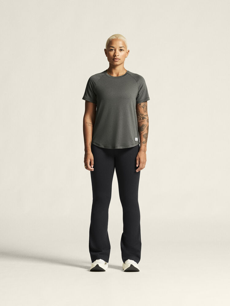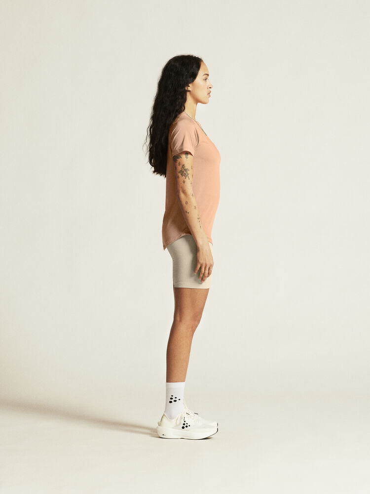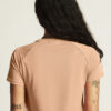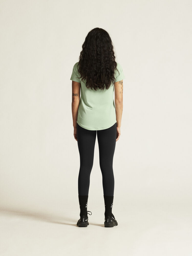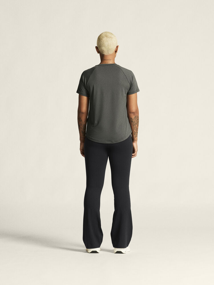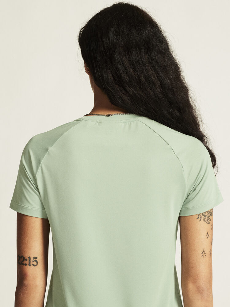 Denne allsidige trenings-t-skjorten er designet for ultimat komfort. Den er laget av en elastisk polyesterblanding med en myk overflate, og gir en luksuriøs, behagelig fornemmelse og utmerket regulering av kroppstemperaturen. Den kommer også med raglan-ermer og en avrundet bunn for en feminin silhuett, som legemliggjør det utsøkte håndverket i hver detalj.