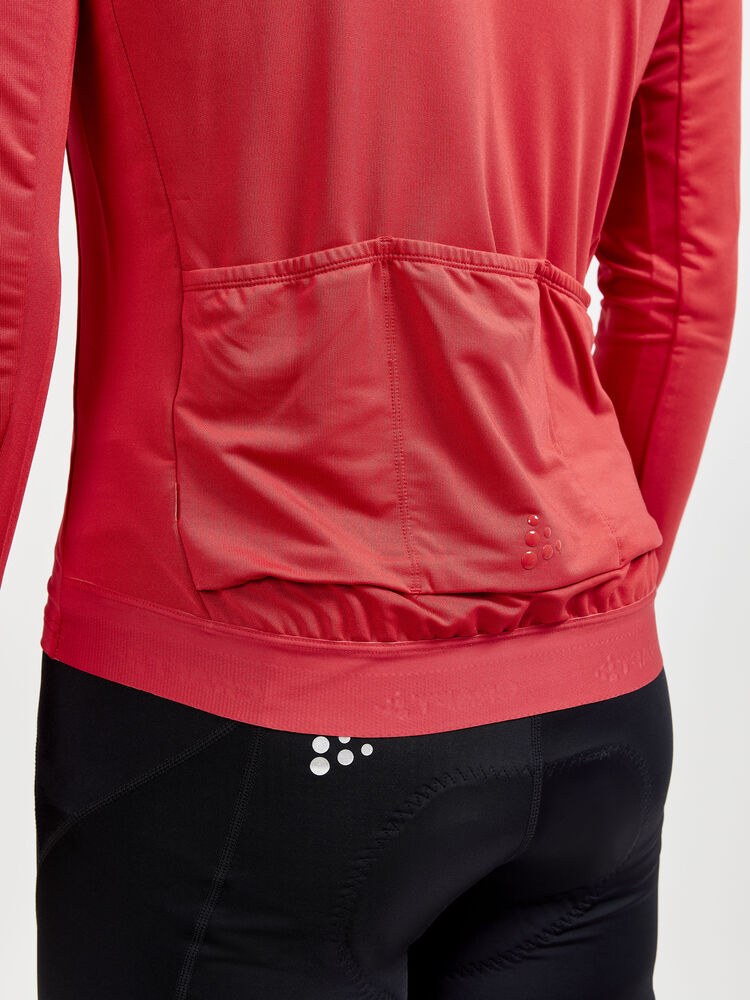 CORE Essence LS Jersey er en funksjonell langermet sykkeltrøye med børstet innside som holder deg varm når du sykler ute i kulden. Trøyen er laget av et elastisk funksjonsmateriale av resirkulert polyester og har fire baklommer. Et perfekt valg for deg som trener regelmessig og verdsetter høy komfort og god funksjon.