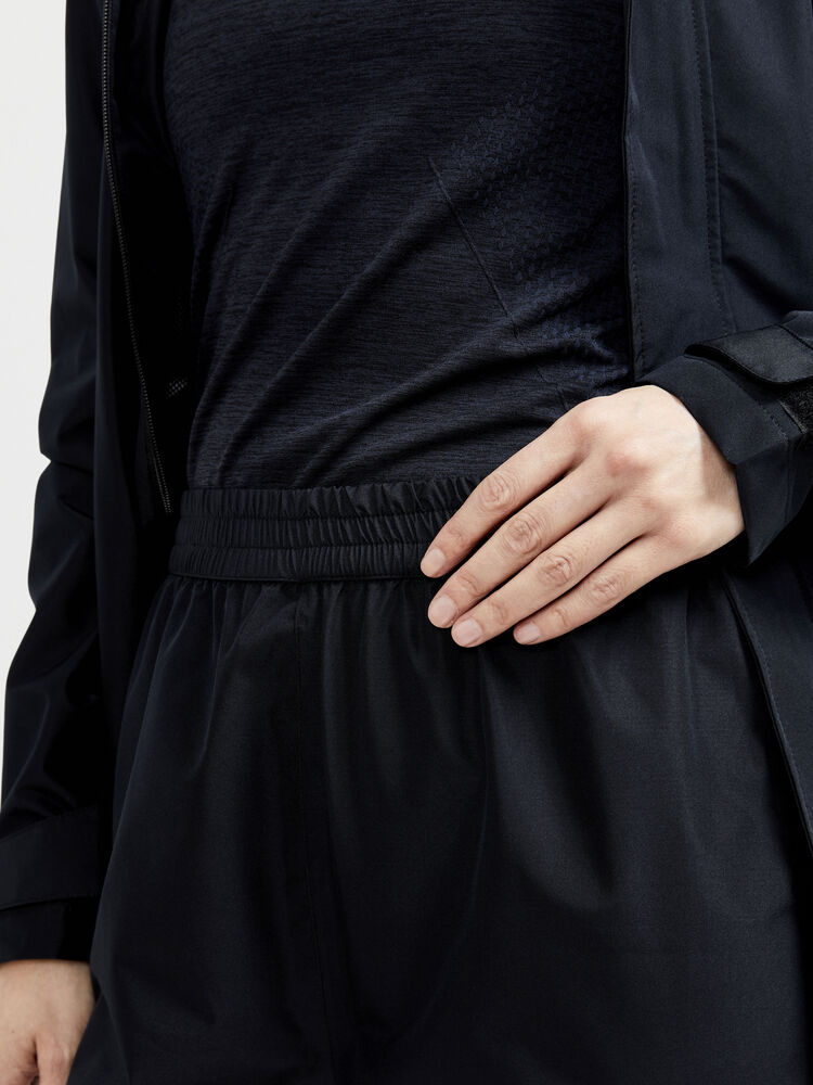 Core Explore Rain Set W er et regnsett til dame som inneholder bukse og jakke med meshfôr, to sidelommer, justerbar snor i nederkant og hette, samt borrelås i ermet og ved benåpning.