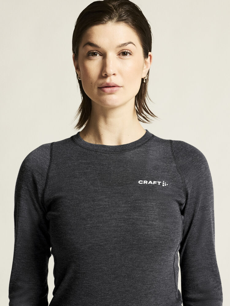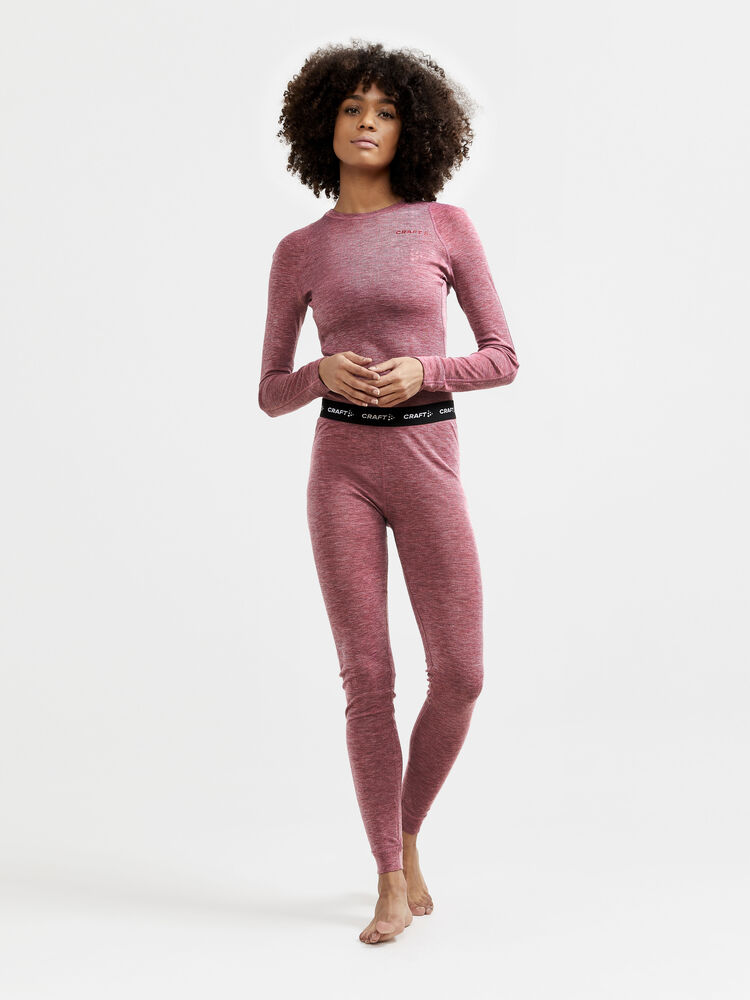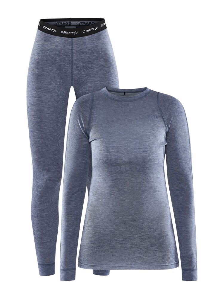 Core Wool Merino Set består av en langermet undertrøye og lang bukse i en myk merinoull- og polyesterblanding som holder deg tørr og varm hele dagen.