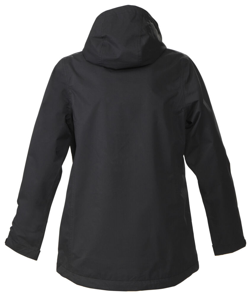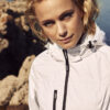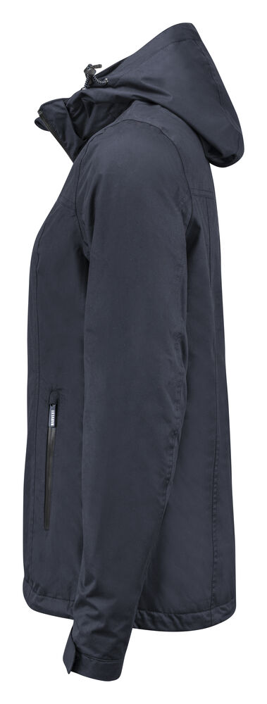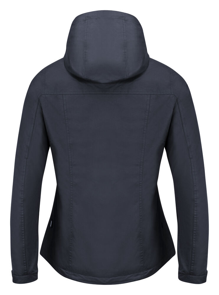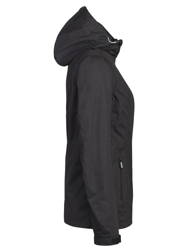 Funksjonell sportsjakke med tapede sømmer og vanntette glidelåser. Glidelåsåpning i rygg- og hettefôr til brodering og trykking. Avtagbar hette. Elastisk justering i linning.