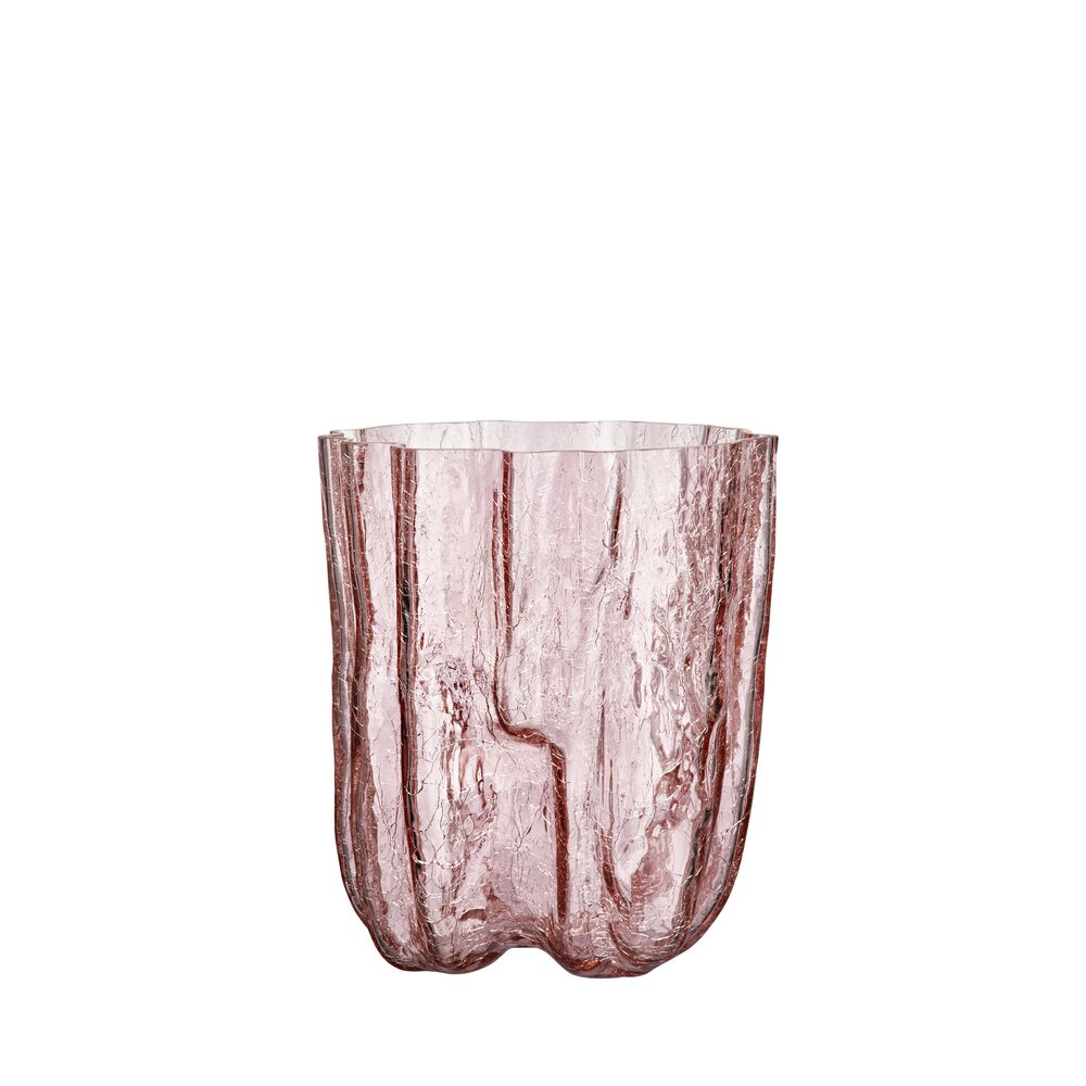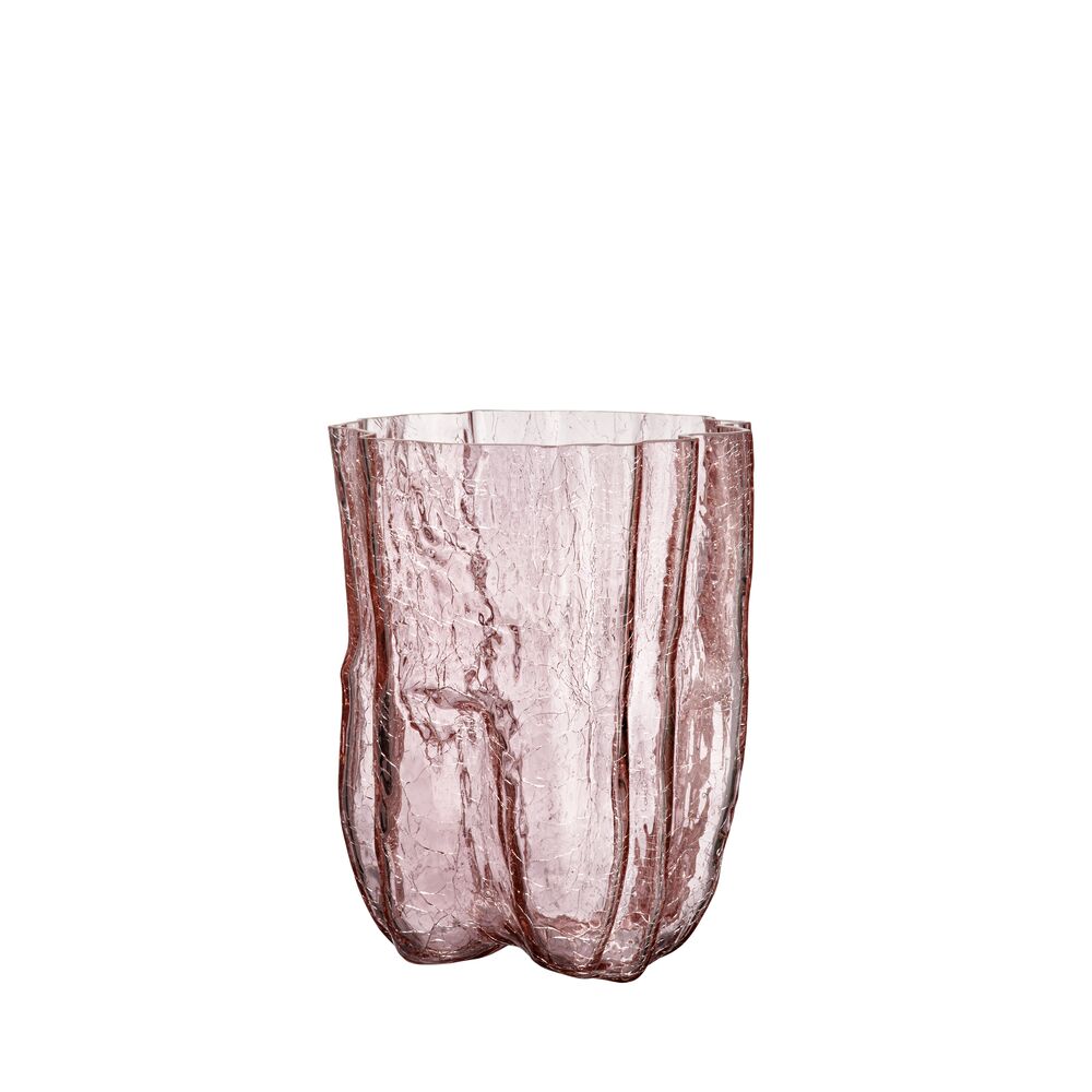 Lyn og torden, magiske underverker. Hos Kosta Boda feirer vi sprekker, vakkert bevart i glass. Vasene i rosa smeltedigel fra Crackle-serien har et skulpturelt og uttrykksfullt ytre som er skapt med en gammel håndverksteknikk hvor det varme glasset dyppes i iskaldt vann. Den sprukne overflaten reflekterer dagens lys og avslører sine historier om ild, jord og vann. Vasen er munnblåst i Kosta og designet av Åsa Jungnelius.