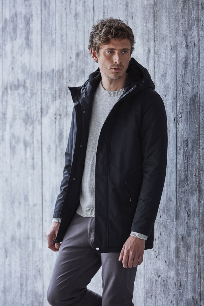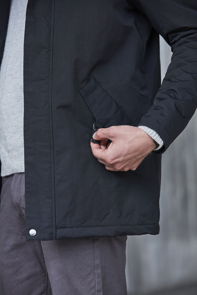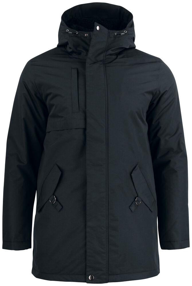 Vattert parkas med mykt teddy-stoff fôr i hette. Brystlomme med glidelås, to lommer foran med magneter og innerlomme med glidelås. Quiltet innvendig og snor i bunn. Justerbare mansjetter og løsning for hodetelefoner. WP / MVP 5000/3000.