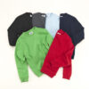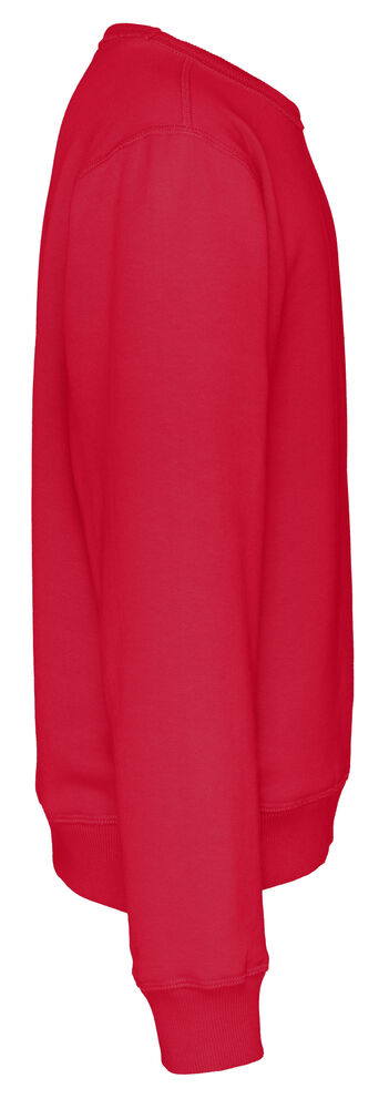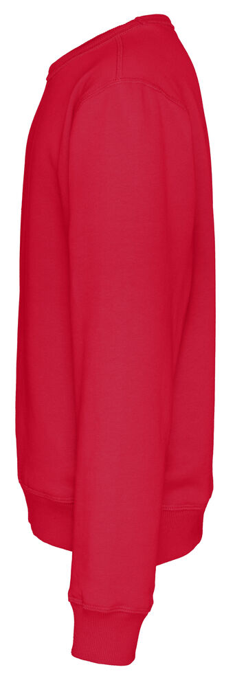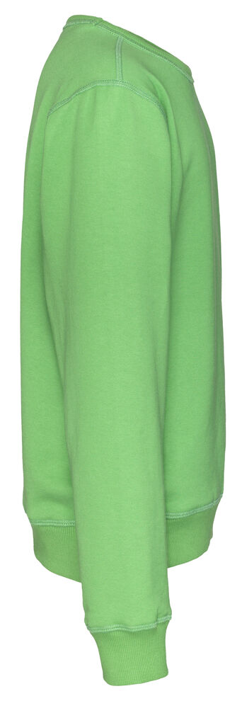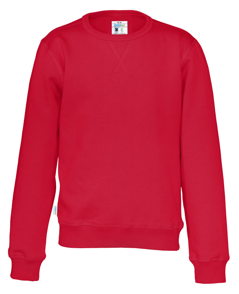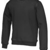 Rundhalset genser med børstet innside. Barnemodell. 2×2 ribbestrikk rundt hals, ermeavslutning og nederkant. Dekorative ton-i-ton sømmer i overlock.