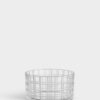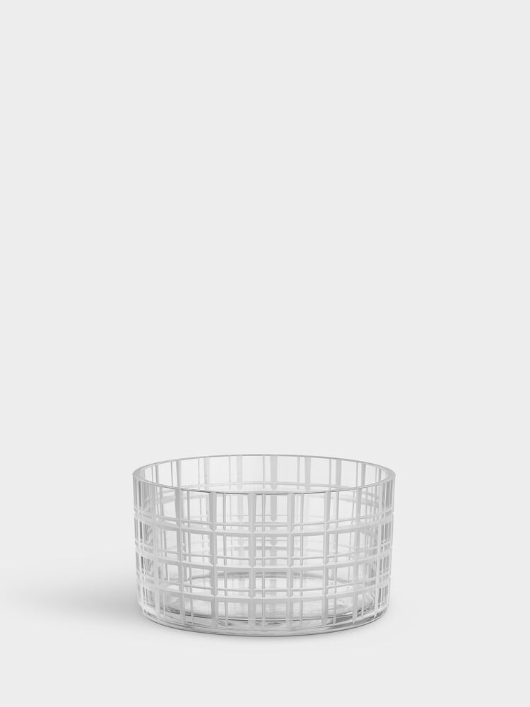 Den lille skålen i Cut in Number-kolleksjonen fra Orrefors har et mattskjært rutemønster, som understreker gjennomsiktigheten til krystallglasset. Designet av Ingegerd Råman.