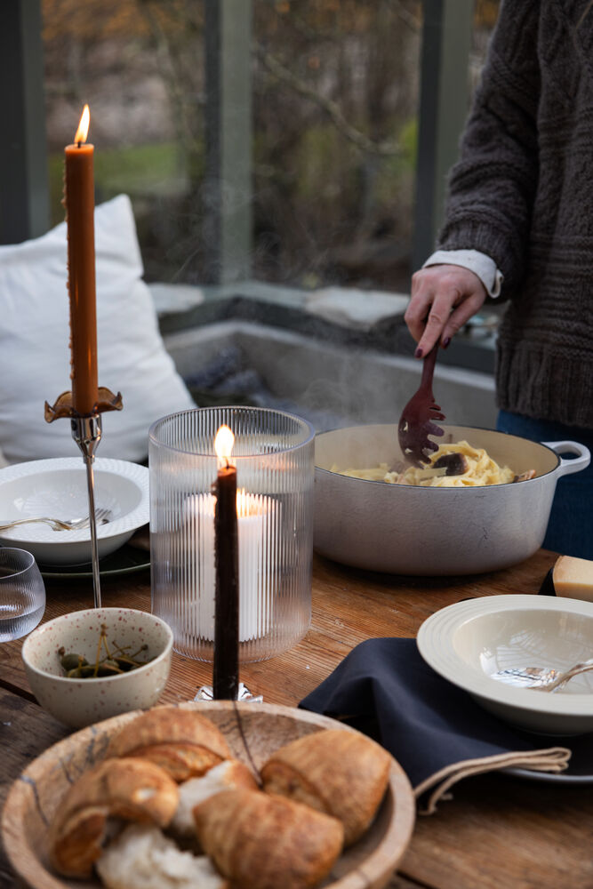 Daniel kjøkkenredskaper fra Sagaform er designet for daglig matlaging. Serien inneholder en pastasleiv og en slikkepott i myk, matt silikon med en hard jernkjerne, perfekt til både varme og kalde retter. Tåler oppvaskmaskin og presenteres i Sagaforms klassiske farger, burgunder og grønn, som kombinerer stil med praktisk funksjonalitet.
