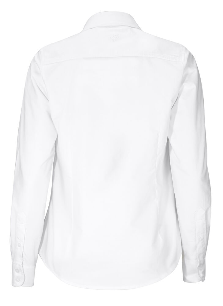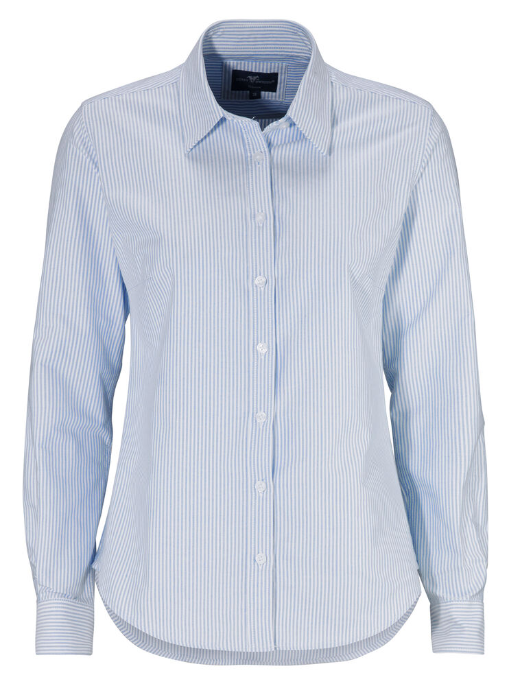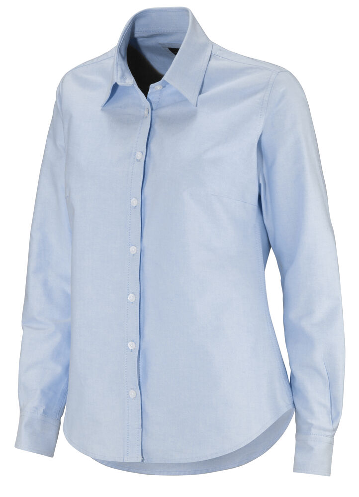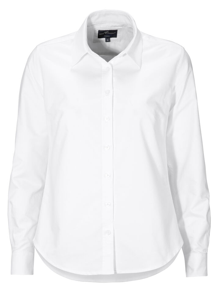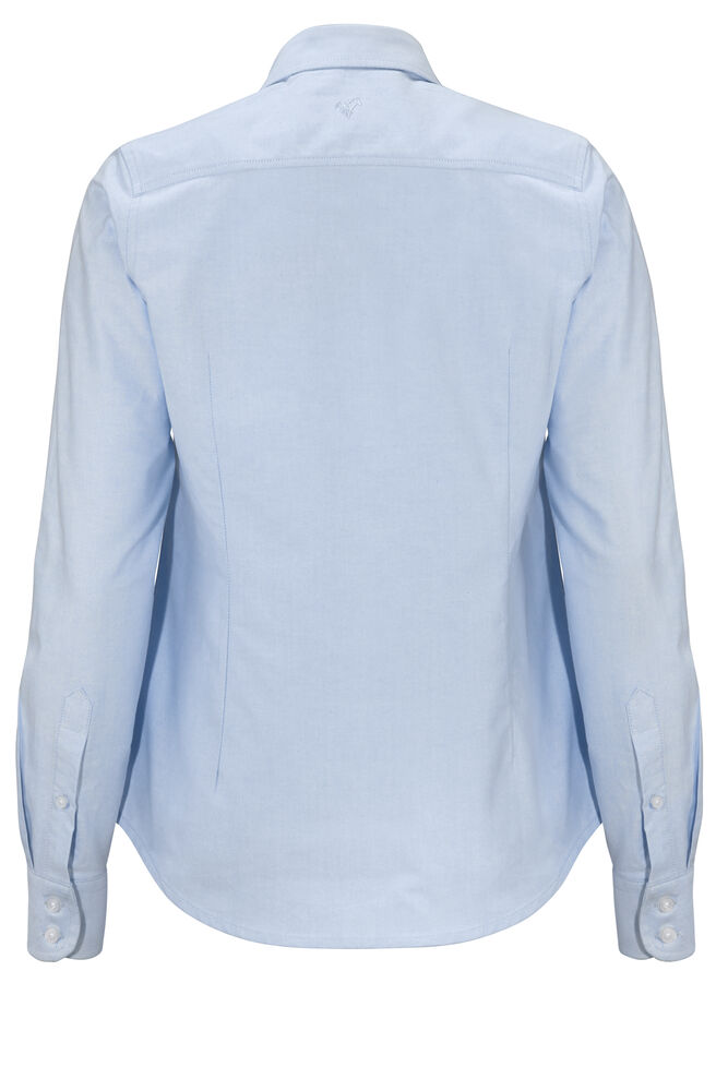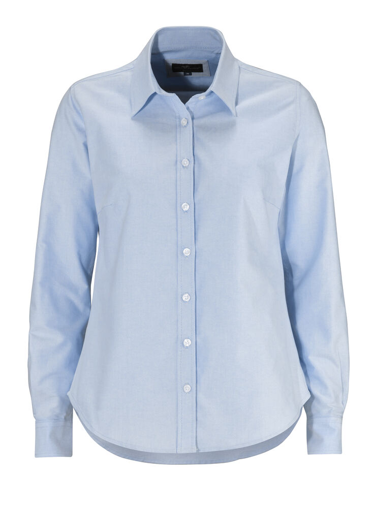 Oxford skjorte med perlemorsknapper. Broderi som går ton-i-ton i nakken. Herremodellene har button down-krage. Comfort har i tillegg en brystlomme. Damemodellen har en turn down-krage og er innsvingt for å gi en bedre passform.