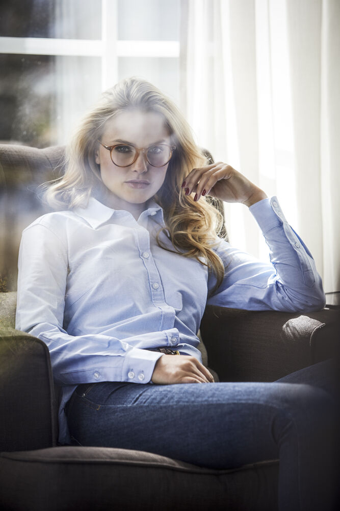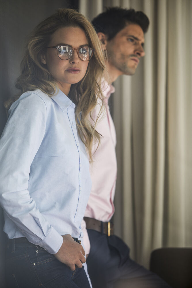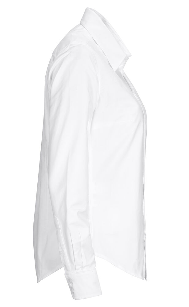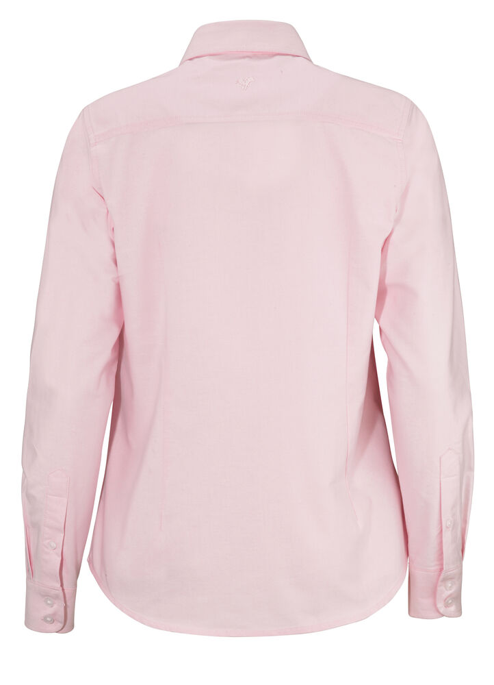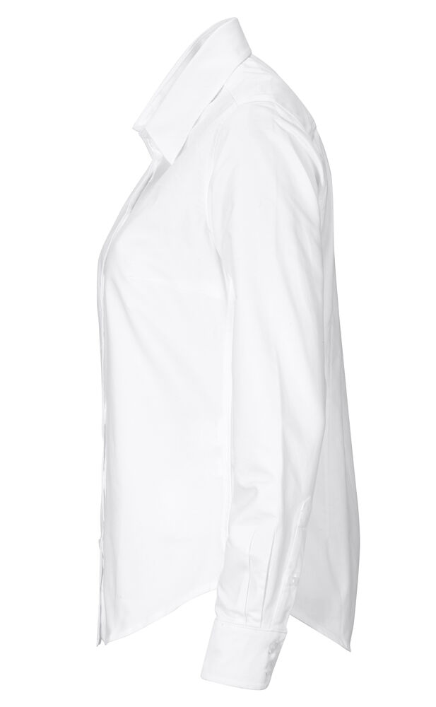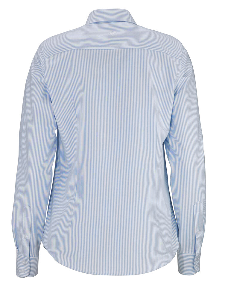 Oxford skjorte med perlemorsknapper. Broderi som går ton-i-ton i nakken. Herremodellene har button down-krage. Comfort har i tillegg en brystlomme. Damemodellen har en turn down-krage og er innsvingt for å gi en bedre passform.