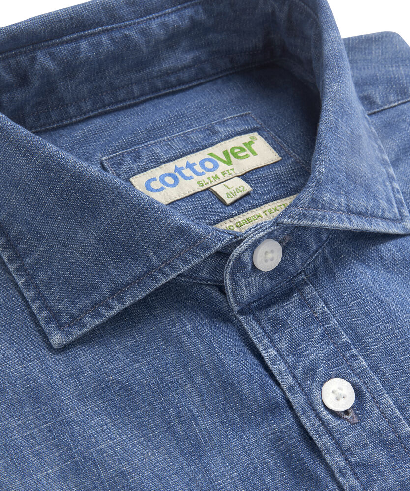 Denimskjorte med en god og myk følelse. Skjorten er enzymbehandlet, noe som gir hver skjorte et naturlig og unikt utseende. Cut away-krage til herre. Finnes i både Slim Fit og Comfort.