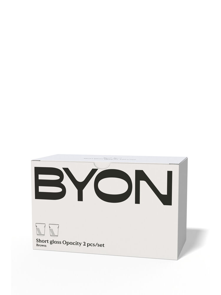 Drikkeglasset Opacity er designet for en perfekt opplevelse, og er inspirert av glassets unike smidighet og dets evne til å oppleves forskjellig avhengig av lys og vinkel. Et tynt og delikat drikkeglass med en perfekt kontrast mellom luksus og dristighet. Tilgjengelig i klart glass og brunt. Tåler oppvaskmaskin. Er sikker for matservering. Volum 30cl. ø8×9,5cm. Stabelbare. Design Byon Studio. Leveres i 2-pakning i Byon-eske.