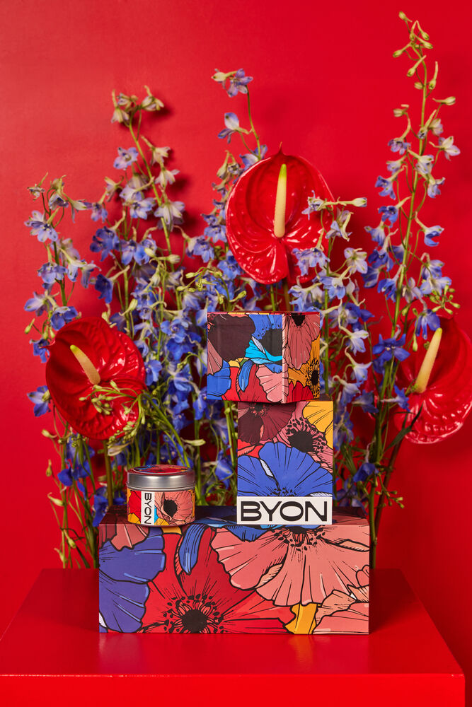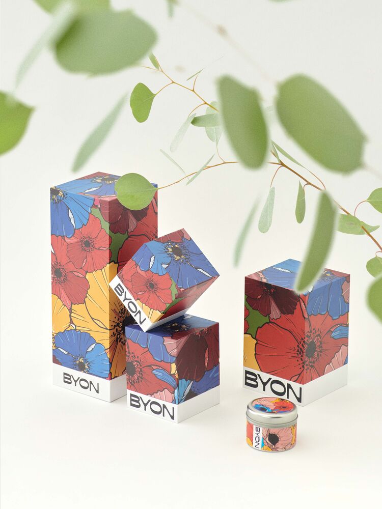 Inne i en blomstermønstret blikkboks, sprer Byons luksuriøse duft Ignite en unik atmosfære i hjemmet, med dufter som reflekterer Byons indre rom. Duften skal fremkalle trygghet og lykke, toppet med en nysgjerrighet så sterk som bare Byon kan skape – og med en fengslende duft av imaginære blomsternoter og tydelig tyngde av sedertre. Duften fanger essensen av hvordan Byon skal lukte, føles og oppleves, noe som gjenspeiles i et glad og lekent design, som skal få hvert rom til å lyse opp og poppe ut. Duftlysene inneholder soyavoks, duft og vegetabilsk olje. Bomullsveke. Lysene inneholder ikke parafin eller andre petrokjemiske stoffer. For en bedre brennopplevelse, trim stearinlysveken før hvert bruk. Brennetid ca 12 timer.