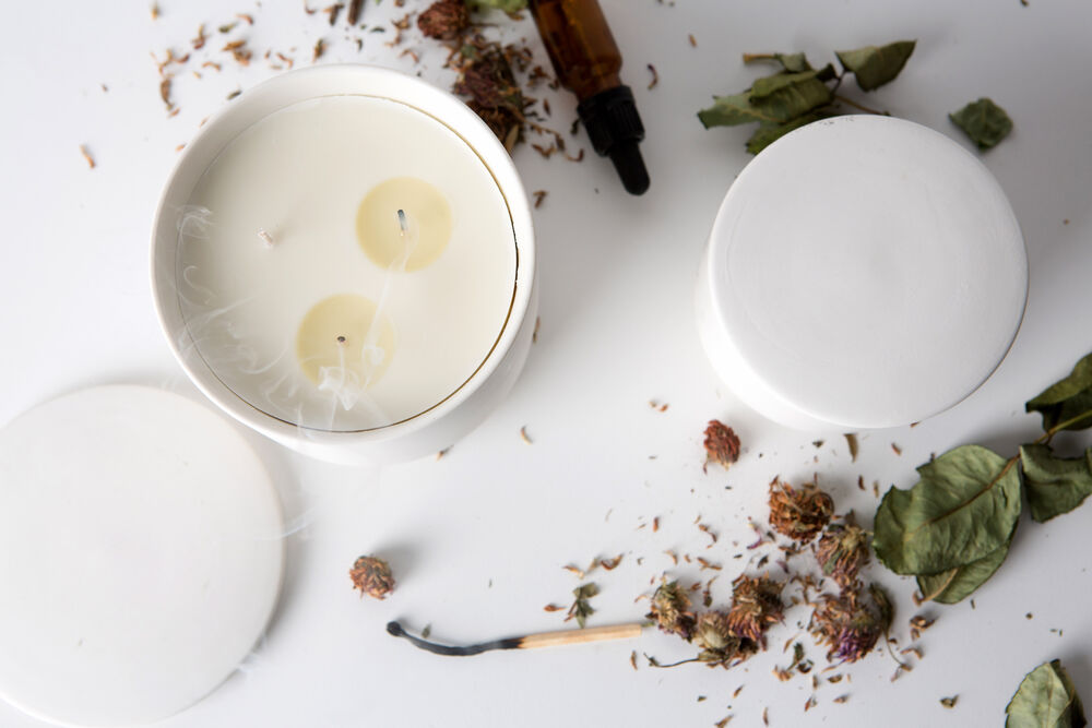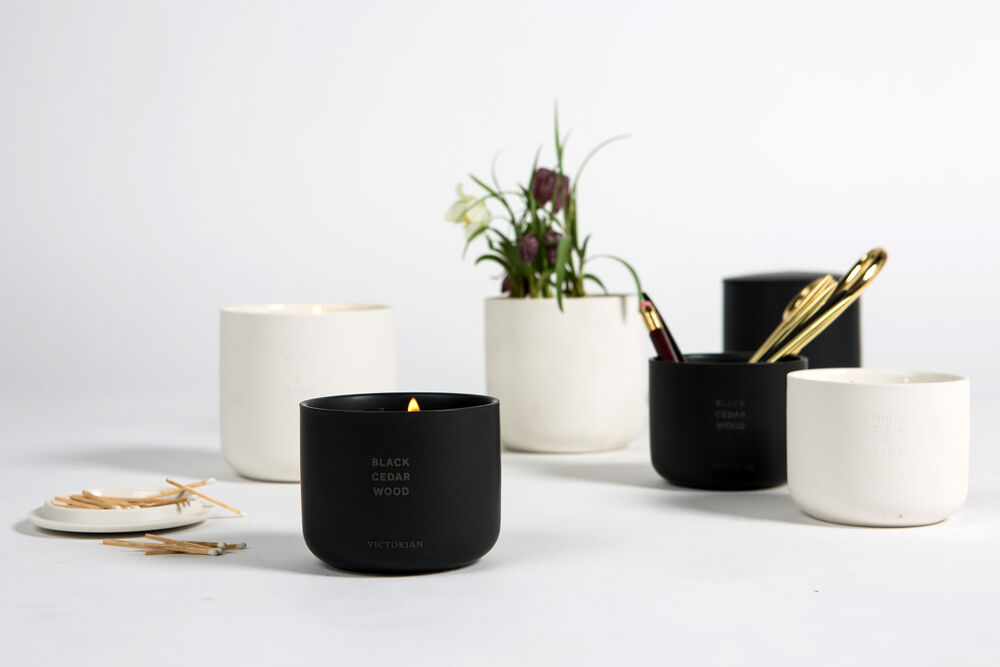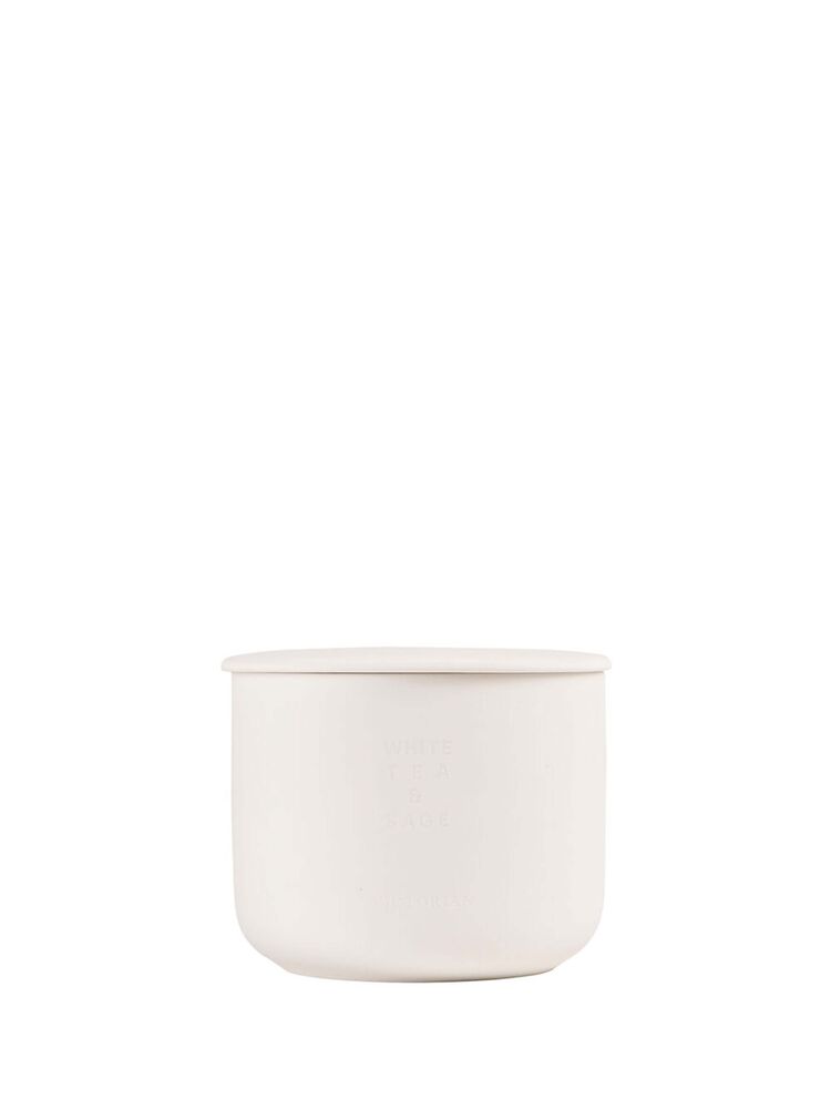 Victorian Candle White tea & Sage – Et stilig lys i hvit keramikk.